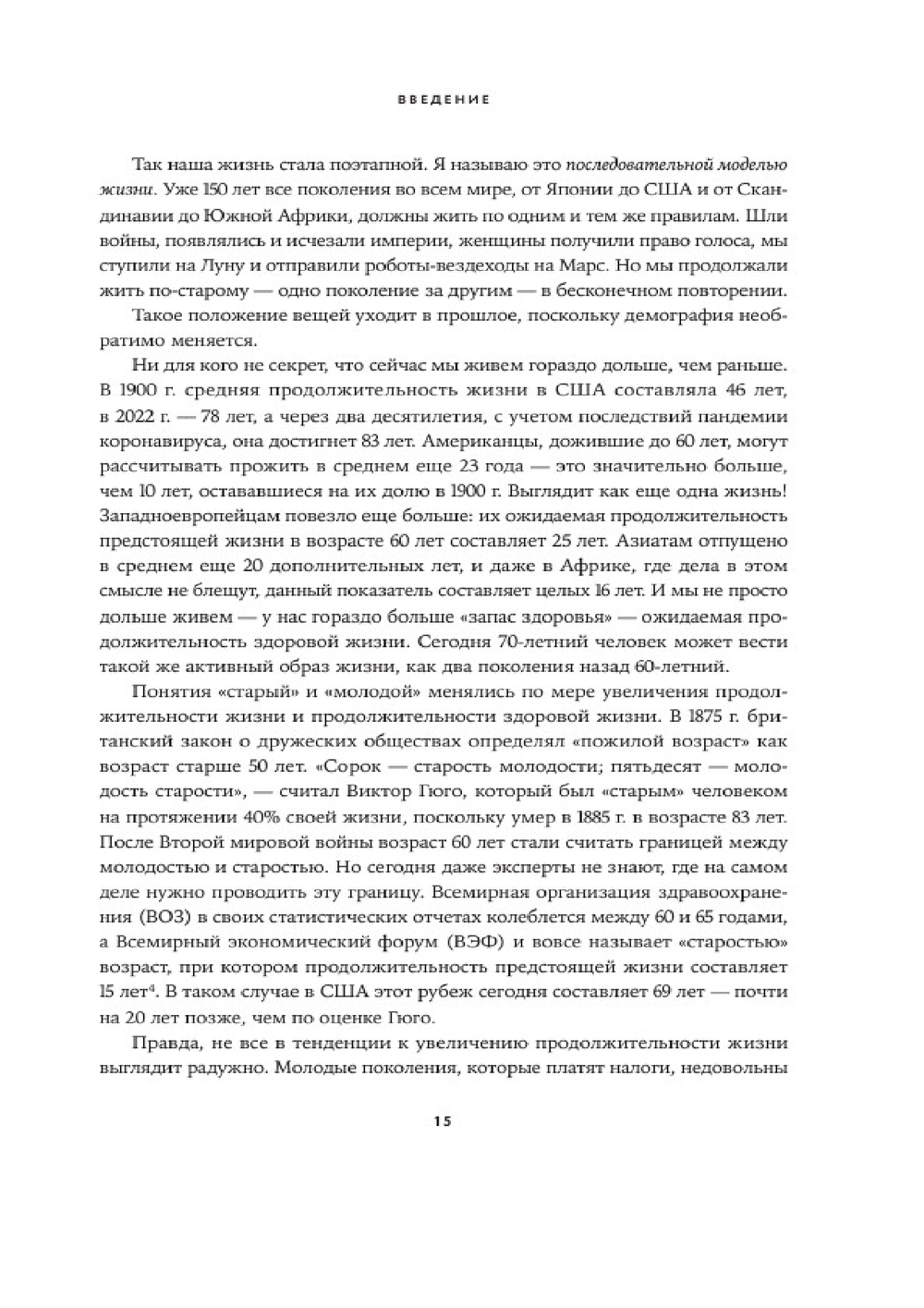 Вы узнаете, как продлить не только продолжительность, но и качество жизни, оставаясь востребованным и энергичным даже после выхода на пенсию. Автор анализирует, как меняются семейные устои и что приходит на смену традиционной карьере, а также предлагает конкретные стратегии адаптации к новой реальности – как для отдельных людей, так и для компаний и государственных институтов.