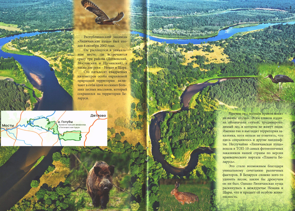 В брошюре речь идет об одной из жемчужин Беларуси – о Республиканском заказнике «Липичанская пуща», пока еще не сильно разрекламированном на территории нашей страны и за ее пределами. Данная территория отличается живописностью, здесь прекрасно сочетаются поросшие соснами материковые дюны, старицы, эоловые холмы, крутые приречные террасы и т.д. Специалисты отмечают высокую долю старовозрастных лесов, среди которых представлены дубравы, кленовники, грабняки.