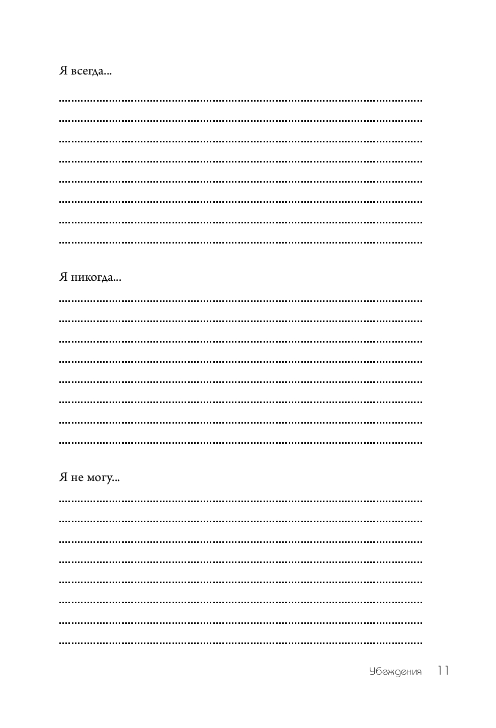 Воркбук вдохновит вас идти по пути желаемых перемен, поддержит и направит. Отвечая на вопросы и делая упражнения, будьте честны с самим собой, ведь у вас нет задачи демонстрировать кому-то свои ответы или делиться инсайтами.