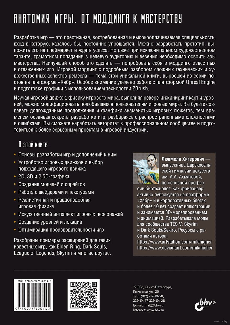 Книга повествует об игровом моддинге – создании модификаций и расширений для 3D, 2,5-D и 2D-игр. Навыки моддинга упрощают вход в индустрию разработки игр и путь к мастерству в гейм-дизайне, даже если человек не имеет академической подготовки в области информатики. Описано создание прототипов и доработка игровых уровней с использованием инструментария Unreal Engine. Дается базовая информация об устройстве игровых движков и выборе подходящего игрового движка. Рассматривается разработка игровой графики, игровых уровней, локаций, обращение с шейдерами, спрайтами, разработка искусственного интеллекта для игровых персонажей. Уделено внимание игровой физике и общим вопросам 3D-моделирования, в том числе, работа с технологией ZBrush и подготовка текстур. Затронуты различные аспекты реверс-инжиниринга и обратной совместимости, дизайн игровых уровней и повышение вовлечённости пользователя в игровой процесс.