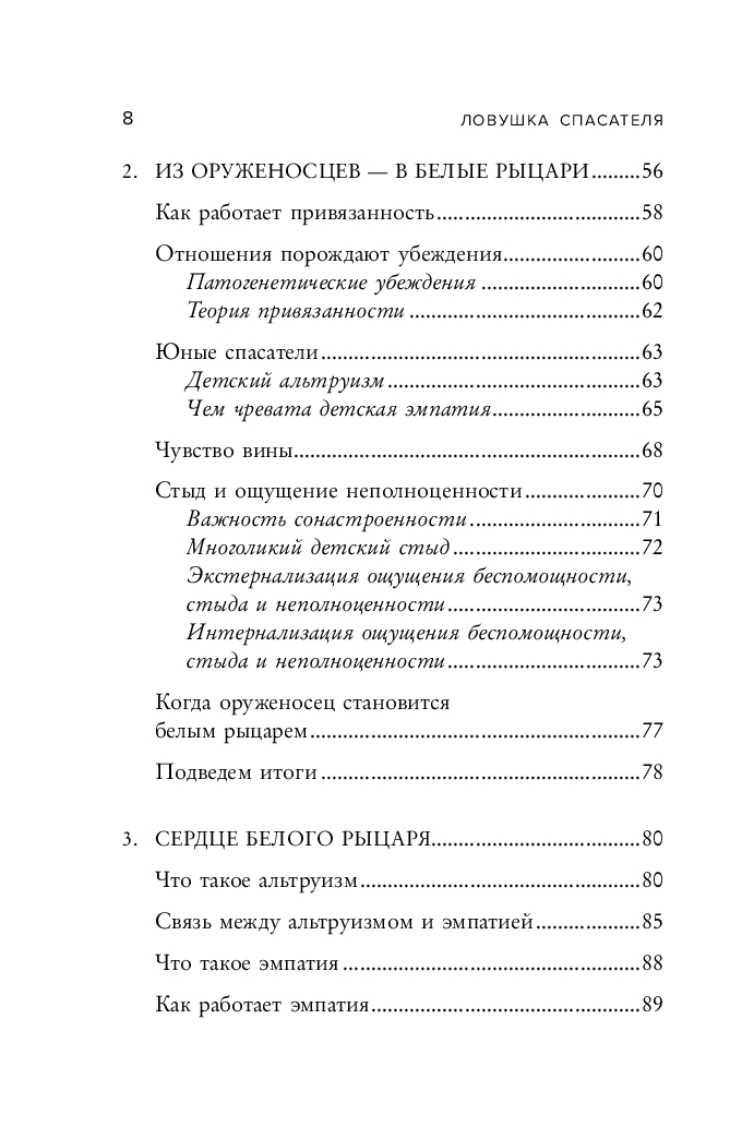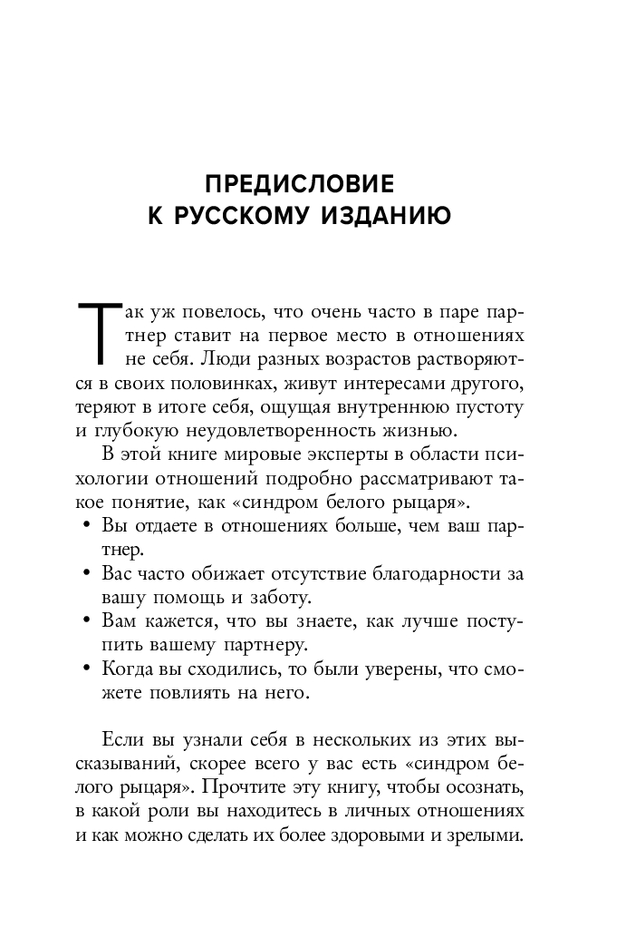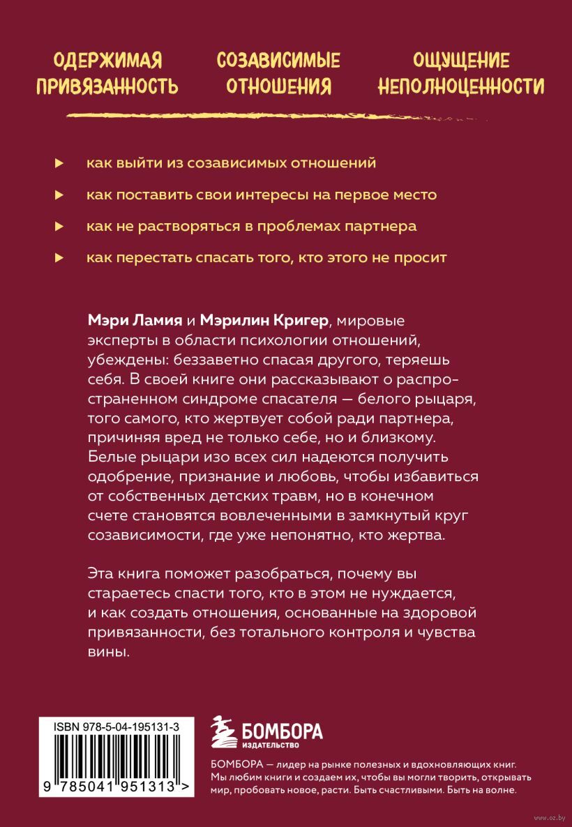 Мэри Ламия и Мэрилин Кригер, мировые эксперты в области психологии отношений, убеждены: беззаветно спасая другого – теряешь себя. В своей книге они рассказывают о распространенном синдроме спасателя – белого рыцаря, того самого, кто жертвует собой ради партнера, причиняя вред не только себе, но и близкому. Белые рыцари изо всех сил надеются получить одобрение, признание и любовь, чтобы избавиться от собственных детских травм, но в конечном счете становятся вовлеченными в замкнутый круг созависимости, где уже непонятно, кто жертва.