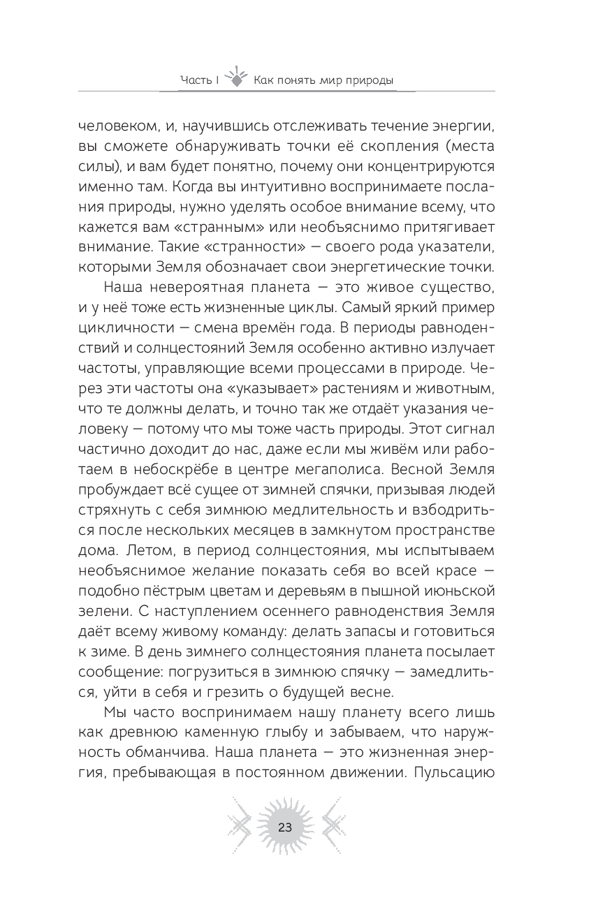 Чудеса и загадки природы окружают нас повсюду, рядом постоянно присутствует множество проводников, союзников и других помощников, как в физической форме, так и в виде нематериальных сущностей. И хотя мы не всегда можем распознать их, мы энергетически запрограммированы получать послания от природы, они помогают нам справляться с трудностями и находить ответы на насущные вопросы. Природа раскрывает наши возможности и поддерживает нас на пути духовного роста.