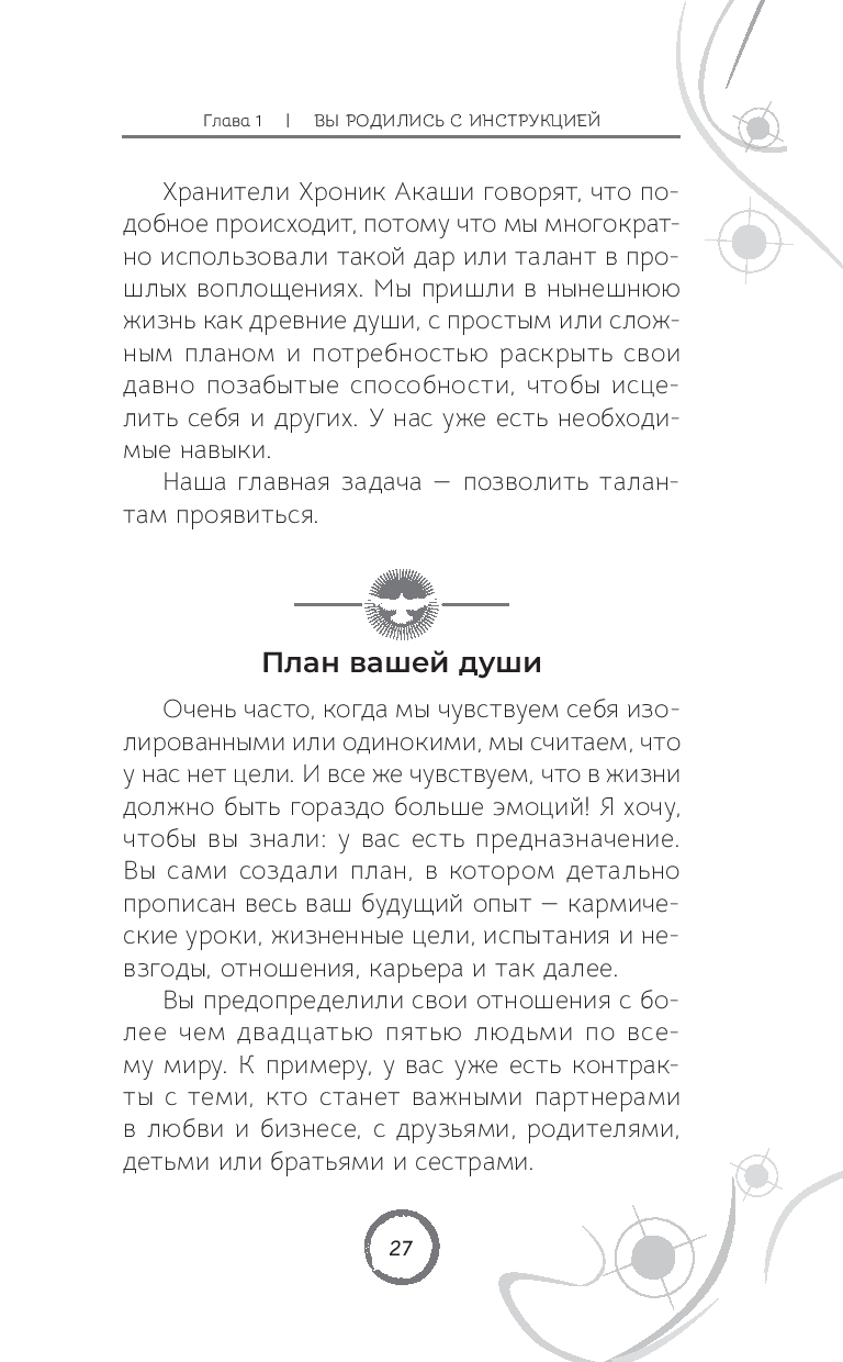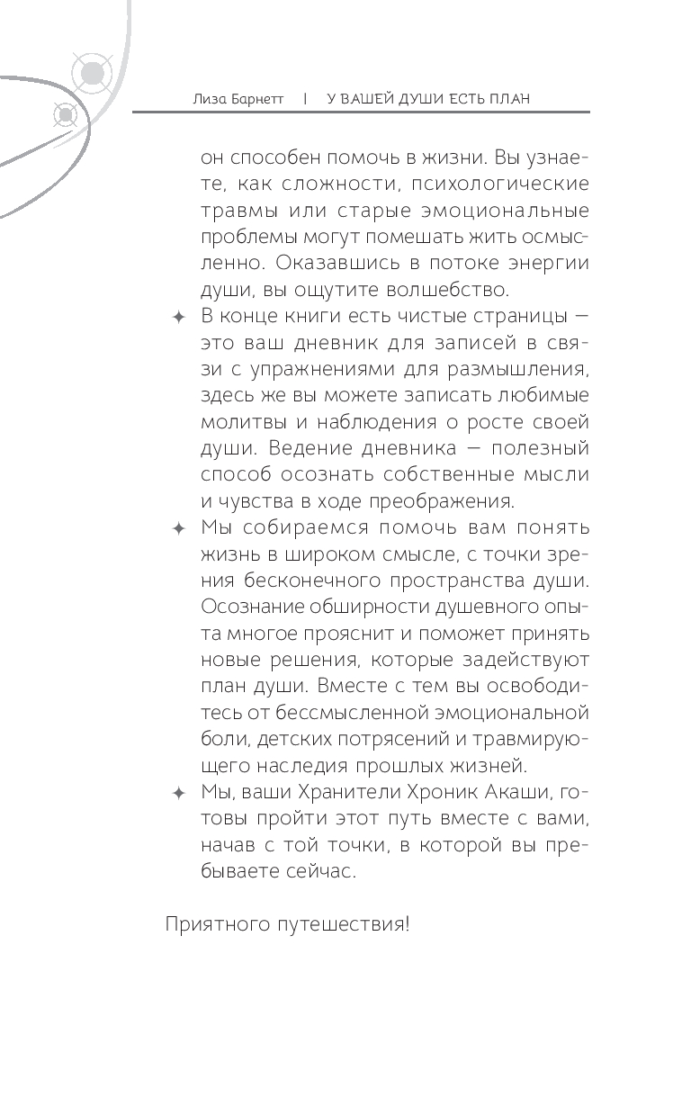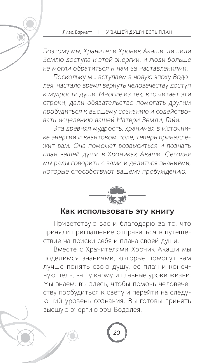 В новой книге популярного автора Лизы Барнетт говорится о том, что все мы рождаемся с собственной инструкцией к жизни. Сконцентрированное знание идет напрямую от Мастеров Акаши, чьи послания автор искусно умеет принимать.