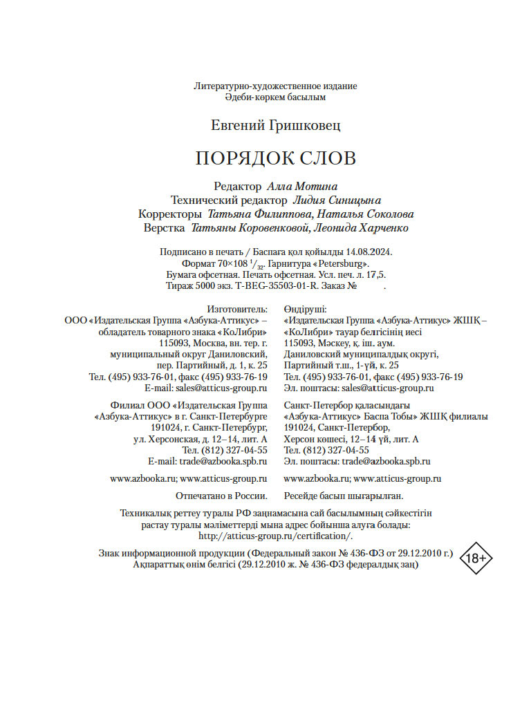 | Изготовитель | ООО "Издательство "КоЛибри". 125009, РФ, г. Москва, пер. Благовещенский, 12, стр. 2 |