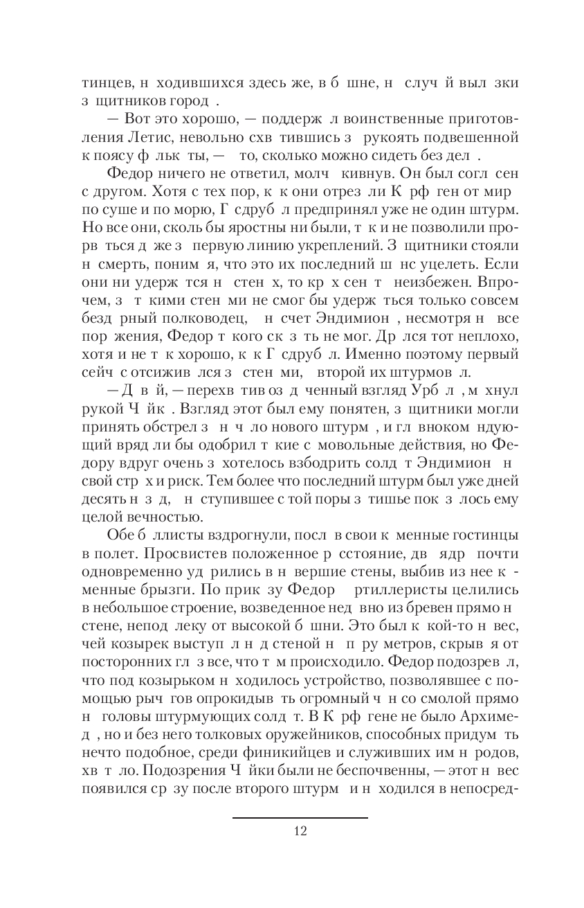 Одновременно, по его сигналу, верные Ганнибалу войска начинают штурм,и вскоре сражение охватывает весь город. Очистительный огонь пожираетосквернённую столицу империи пунов, квартал за кварталом. Римляне, вместе с предателями, в ужасе бегут из Карфагена на своих кораблях. Несмотряна преследование, Марцеллу с пленниками удается ускользнуть.Беглый сенатор укрылся в Риме, но его крепкие стены уже никого неспасут. Освобождение началось. И вот уже Рим окружен со всех сторон пол-чищами кельтов и скифской конницей. Метательные орудия Архимеда методично разносят стены, мосты и акведуки. Поджигают землю. Смертоносный огонь пожирает все на своем пути. Горят римские храмы. С неба падают птицы с опалёнными крыльями. По разрушенным улицам мечутся обезумевшие люди, но нет им спасенья. Месть богов Карфагена обрушилась на своих врагов. Их империя умерла, так и не успев родиться.
