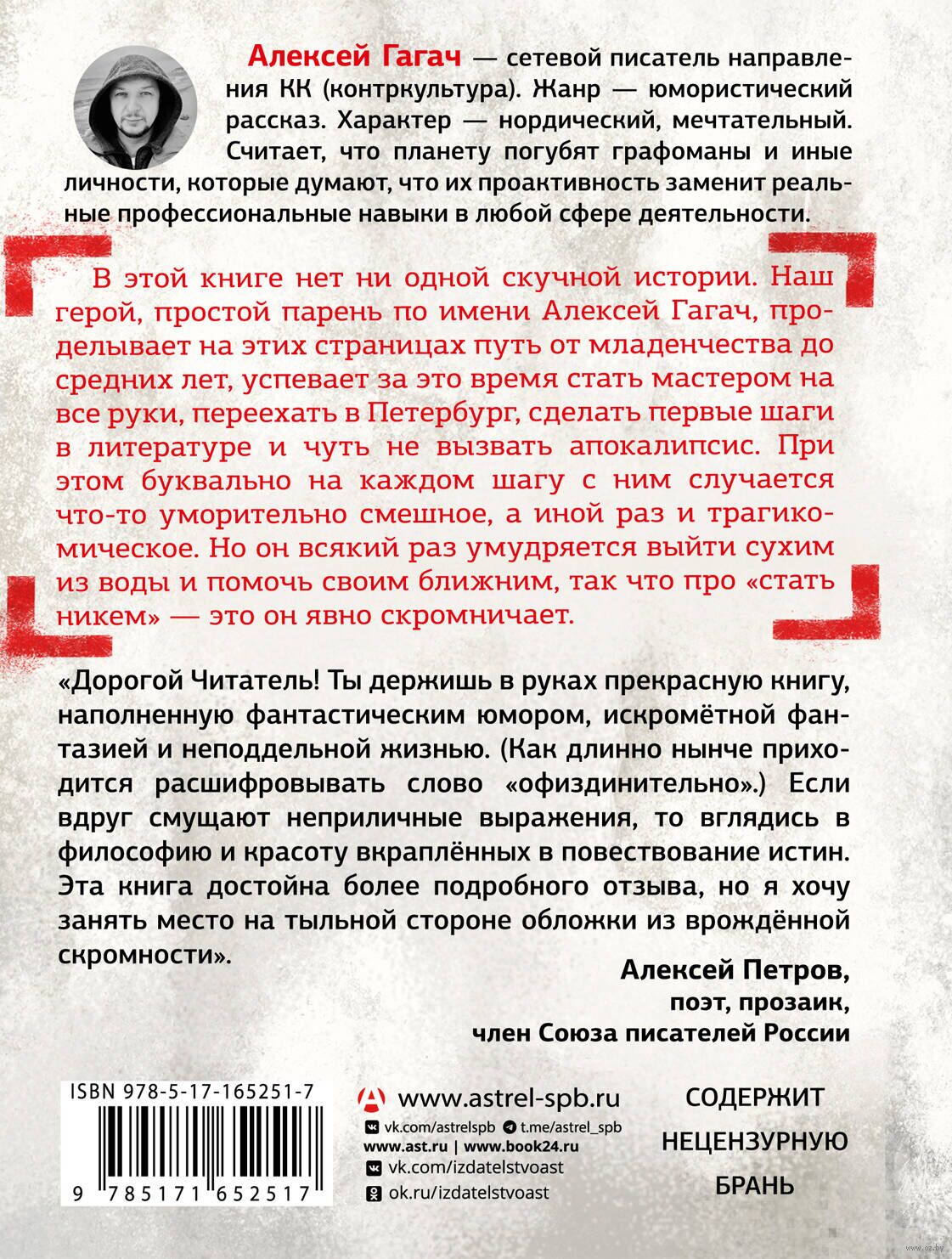 В этой книге нет ни одной скучной истории. Наш герой, простой парень по имени Алексей Гагач, проделывает на этих страницах путь от младенчества до средних лет, успевает за это время стать мастером на все руки, переехать в Петербург, сделать первые шаги в литературе и чуть не вызвать апокалипсис. При этом буквально на каждом шагу с ним случается что-то уморительно смешное, а иной раз и трагикомическое. Но он всякий раз умудряется выйти сухим из воды и помочь своим ближним, так что про "стать никем" – это он явно скромничает.