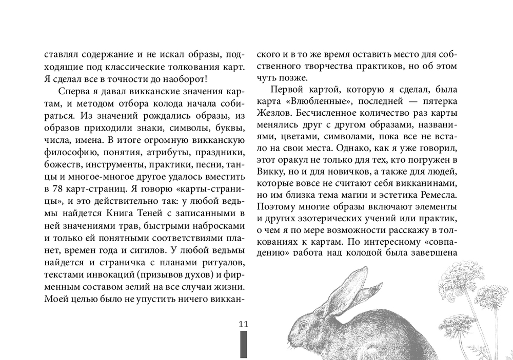 В младших арканах вы увидите разные эпизоды из жизни викканской жрицы или эклектичной ведьмы. Каждый из них чему-то учит или подсказывает лучший вариант решения вопроса с помощью определенных ритуалов и энергий. На картах, кроме основного названия, есть дополнительные тексты: они либо касаются магических воздействий, либо раскрывают разные темы природной магии.
