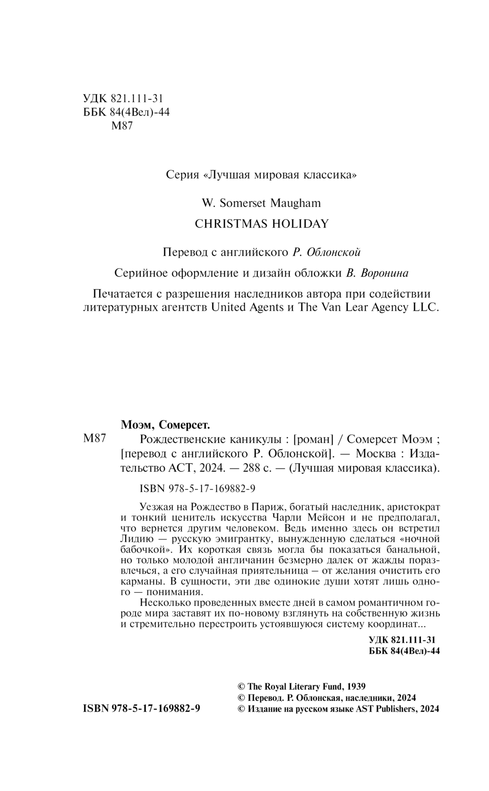 Уезжая на Рождество в Париж, богатый наследник, аристократ и тонкий ценитель искусства Чарли Мейсон и не предполагал, что вернется другим человеком. Ведь именно здесь он встретил Лидию – русскую эмигрантку, вынужденную сделаться "ночной бабочкой". Их короткая связь могла бы показаться банальной, но только молодой англичанин безмерно далек от жажды поразвлечься, а его случайная приятельница – от желания очистить его карманы. В сущности, эти две одинокие души хотят лишь одного – понимания.Несколько проведенных вместе дней в самом романтичном городе мира заставят их по-новому взглянуть на собственную жизнь и стремительно перестроить устоявшуюся систему координат…
