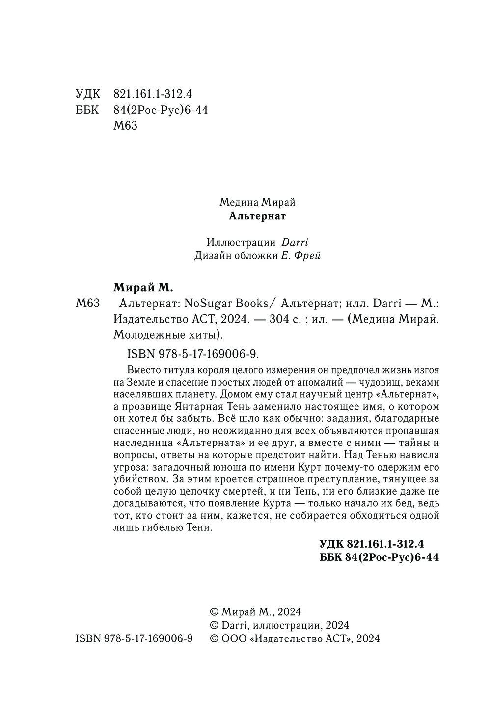 Вместо титула короля целого измерения он предпочел жизнь изгоя на Земле и спасение простых людей от аномалий – чудовищ, веками населявших планету.Домом ему стал научный центр "Альтернат", а прозвище Янтарная Тень заменило настоящее имя, о котором он хотел бы забыть.