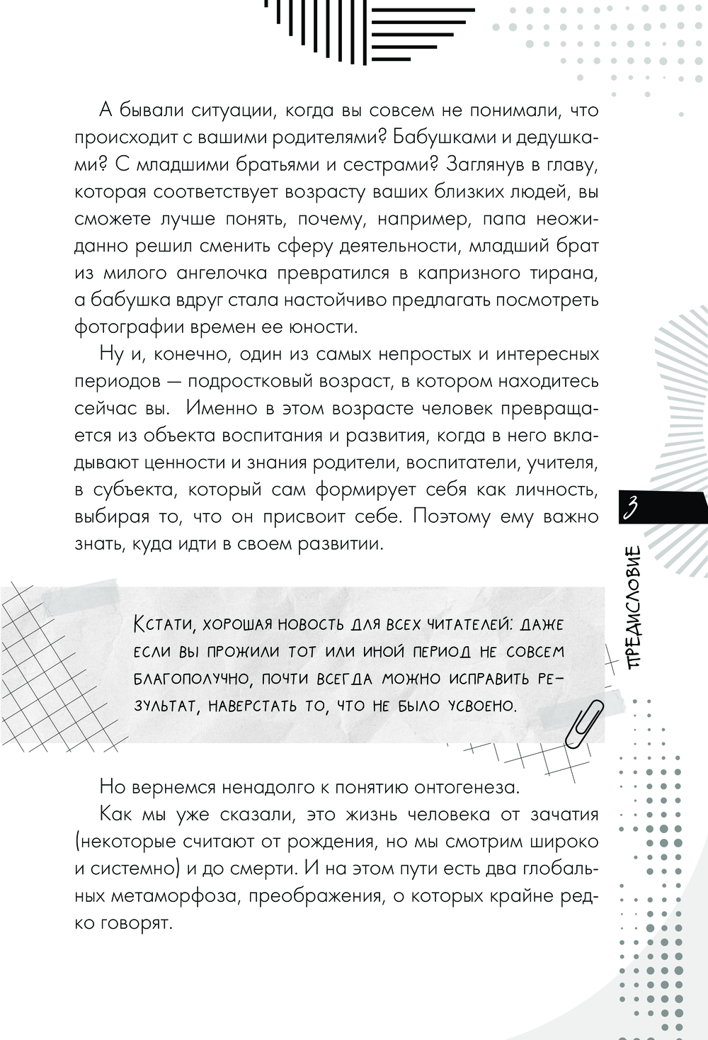 Сколько кризисов в жизни человека от рождения до старости? Можно ли изменить свою жизнь и исправить в сознательном возрасте ошибки детства? Как прожить подростковый возраст с пользой и стать полноценным взрослым? Что такое онтогенез и почему нельзя прожить жизнь иначе? На эти и другие вопросы вам ответит книга практикующих психологов Катерины Мурашовой и Анны Барышниковой, обращенная к подросткам и их родителям.