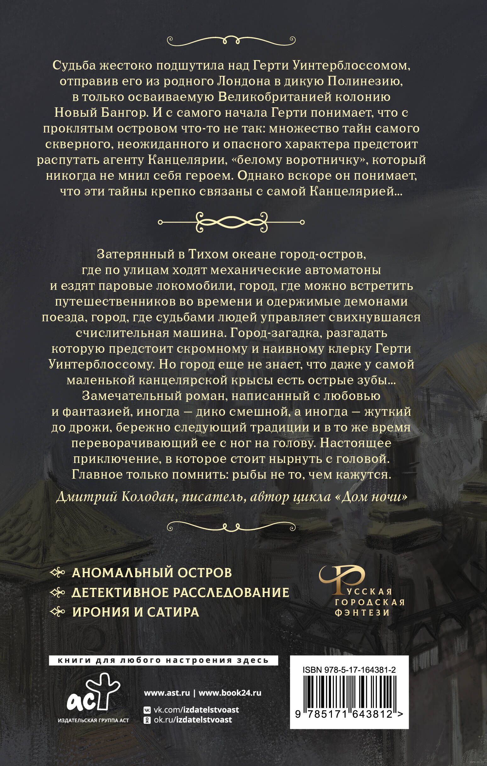 И с самого начала Герти понимает, что с проклятым островом что-то не так: множество тайн самого скверного, неожиданного и опасного характера предстоит распутать агенту Канцелярии, "белому воротничку", который никогда не мнил себя героем.
