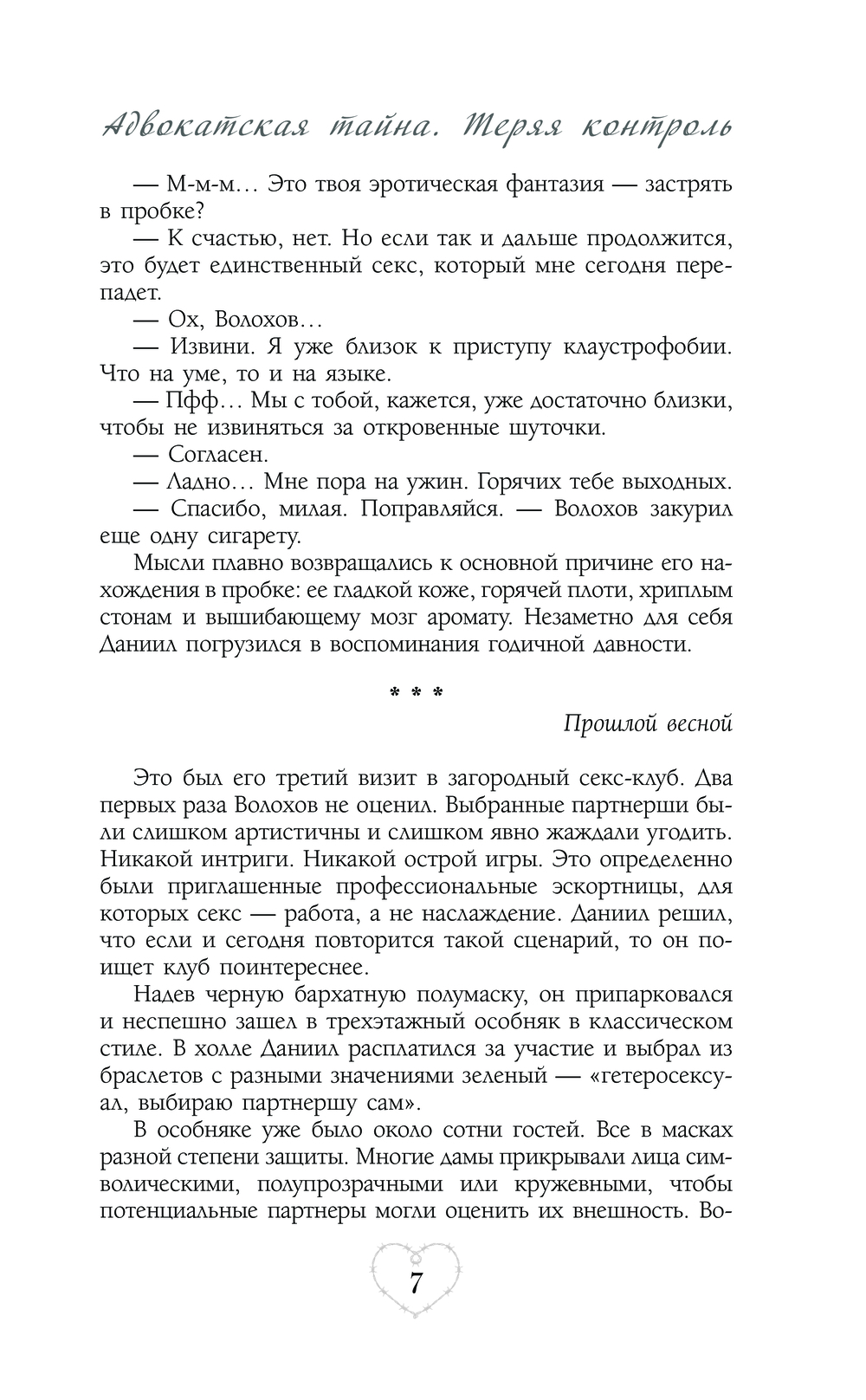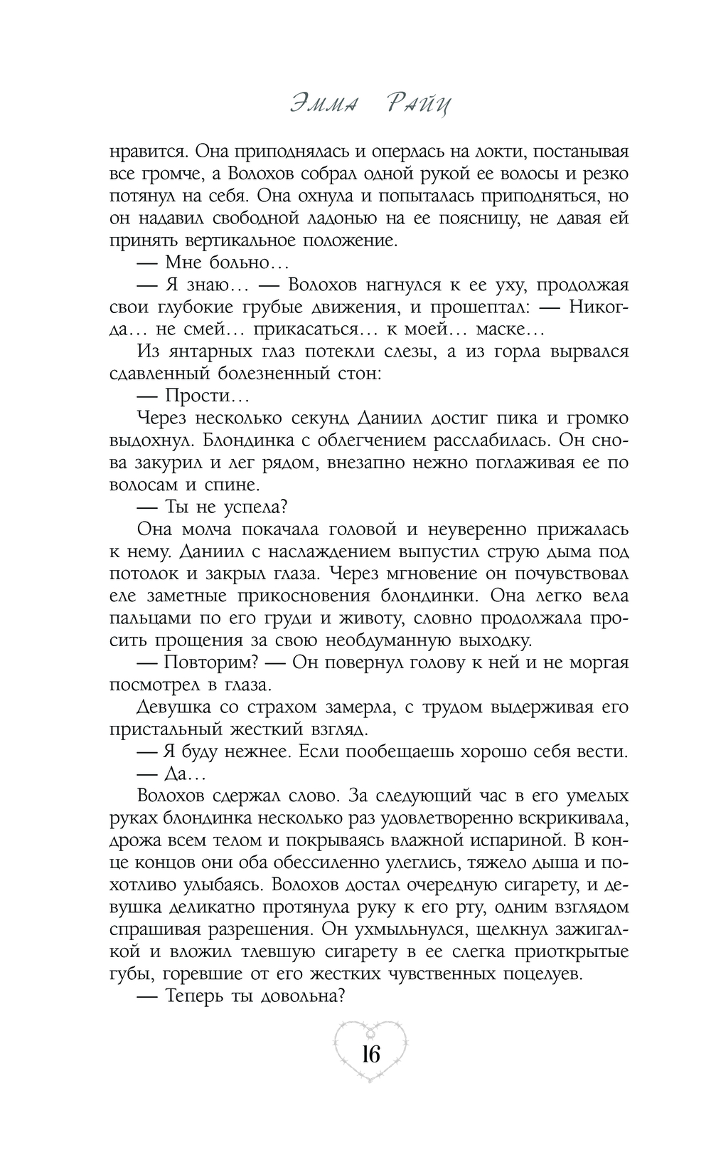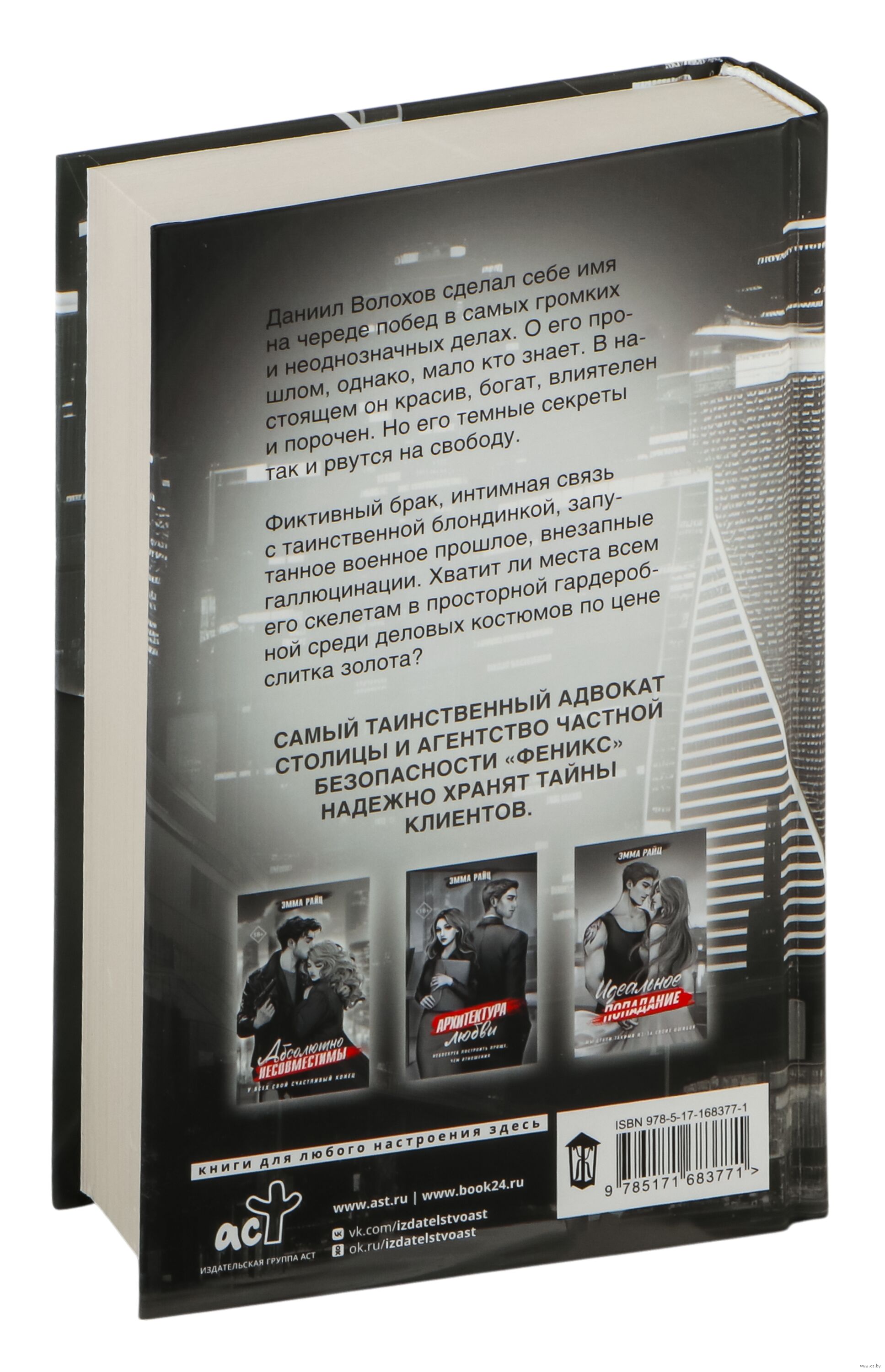 Даниил Волохов сделал себе имя на череде побед в самых громких и неоднозначных делах. О его прошлом, однако, мало кто знает. В настоящем он красив, богат, влиятелен и порочен. Но его темные секреты так и рвутся на свободу.Фиктивный брак, интимная связь с таинственной блондинкой, запутанное военное прошлое, внезапные галлюцинации. Хватит ли места всем его скелетам в просторной гардеробной среди деловых костюмов по цене слитка золота?