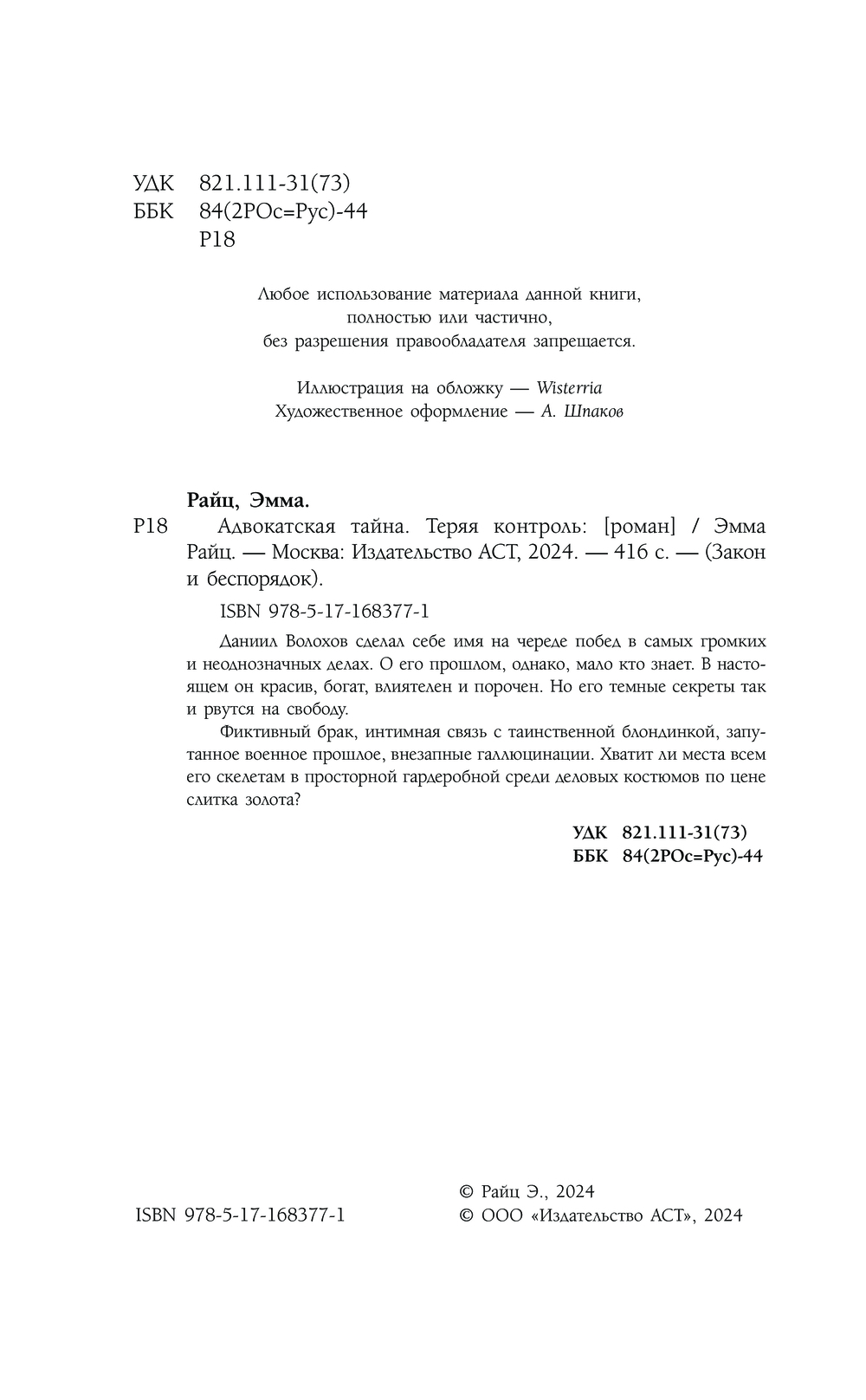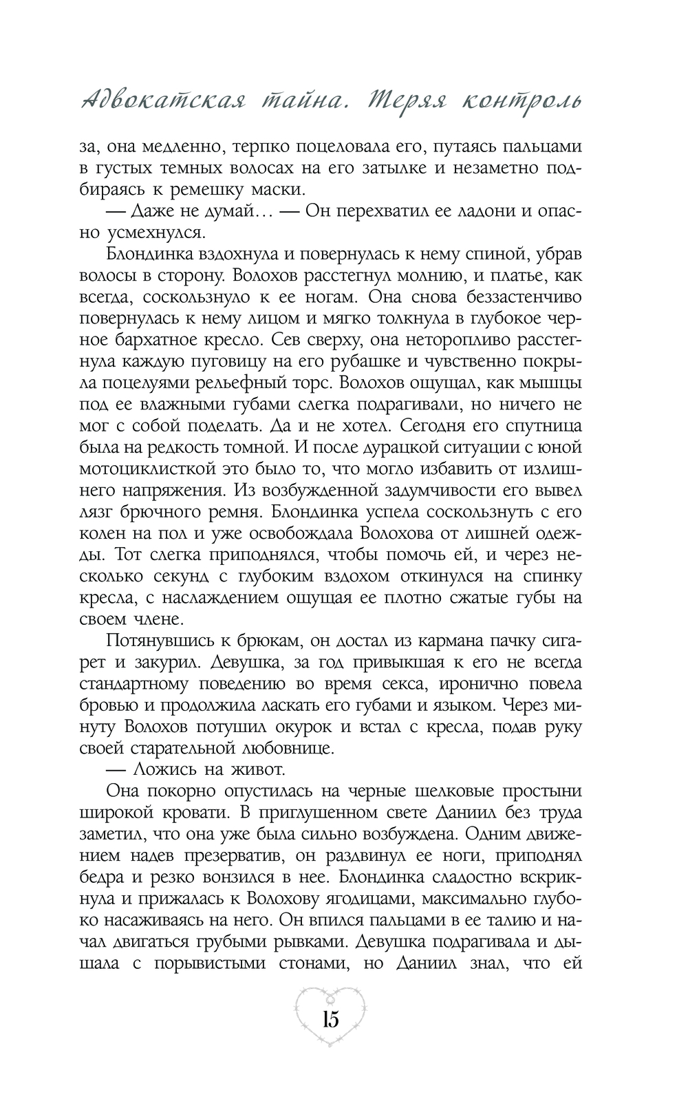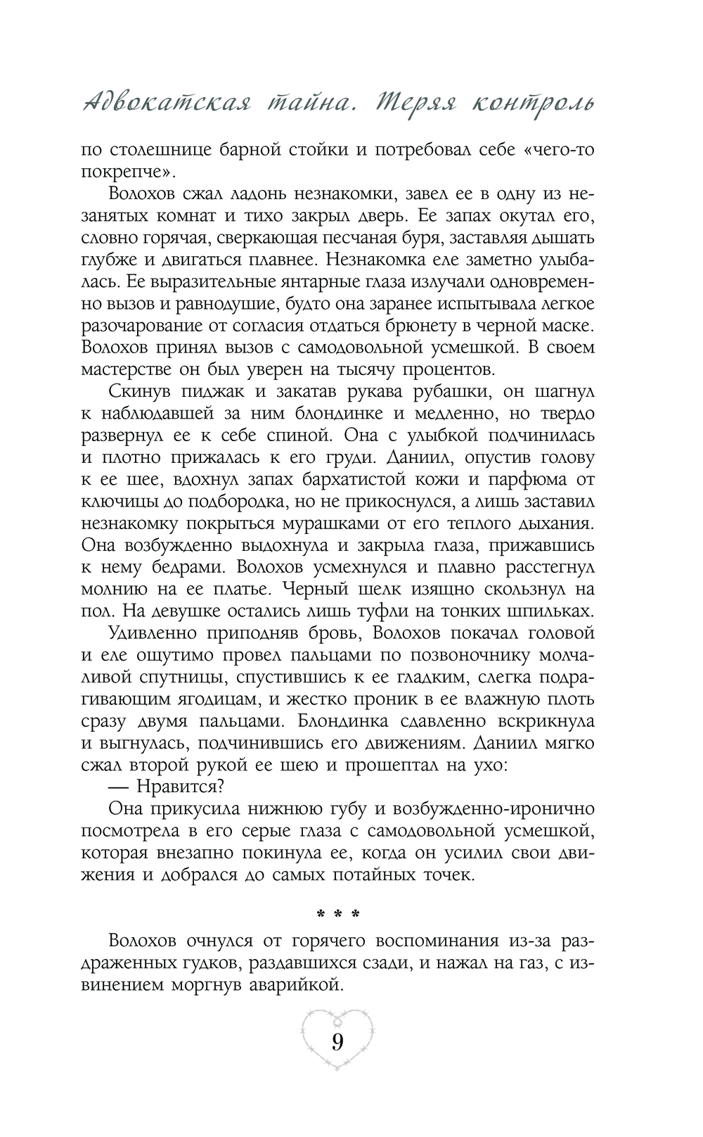 Даниил Волохов сделал себе имя на череде побед в самых громких и неоднозначных делах. О его прошлом, однако, мало кто знает. В настоящем он красив, богат, влиятелен и порочен. Но его темные секреты так и рвутся на свободу.Фиктивный брак, интимная связь с таинственной блондинкой, запутанное военное прошлое, внезапные галлюцинации. Хватит ли места всем его скелетам в просторной гардеробной среди деловых костюмов по цене слитка золота?