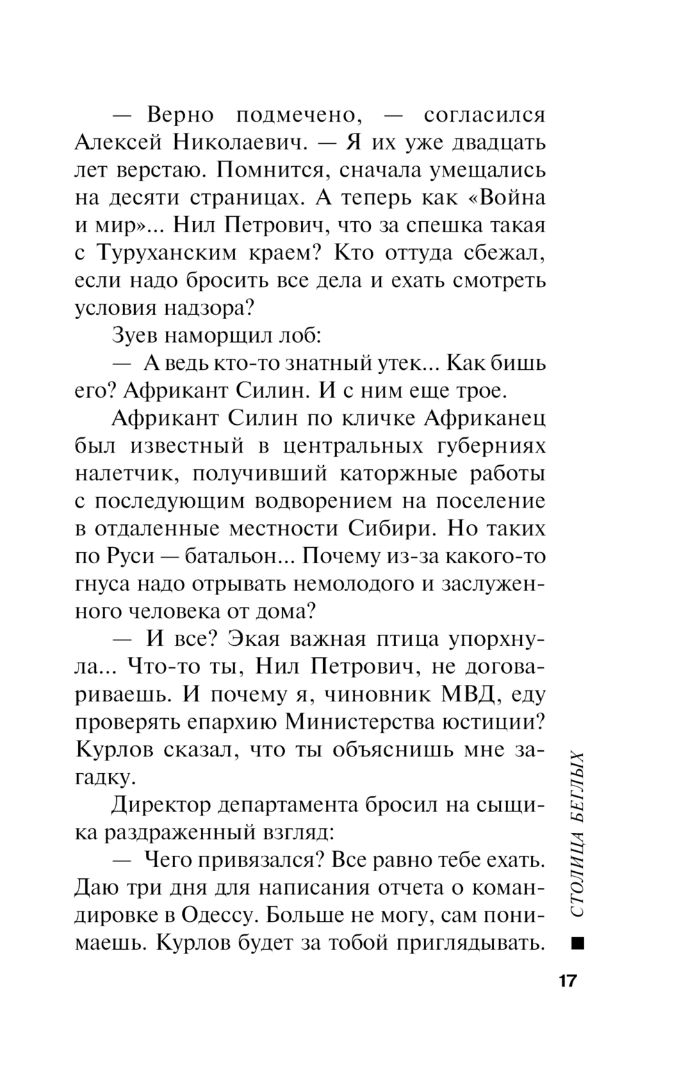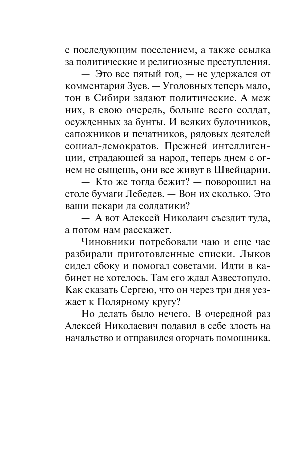 Коллежский советник Лыков провинился перед начальством. Бандиты убили в Одессе родителей его помощника Сергея Азвестопуло. А он привлек к поискам убийц самого Сергея, а не отослал в Петербург, как велели. В наказание Лыкова послали в Туруханский край. Оттуда участились побеги ссыльных; надо выяснить, как они ухитряются исчезать бежать из такого гиблого места. Прибыв к Полярному кругу, сыщик узнает, что побеги поставлены на поток. И где-то в окрестностях Иркутска спрятаны "номера для беглых". В них элита преступного мира отсиживается, меняет внешность, получает новые документы. А когда полиция прекращает их поиски, бандиты возвращаются в большие города. Не зря Иркутск называют столицей беглых. Лыков принимает решение ехать туда, чтобы найти и уничтожить притон.