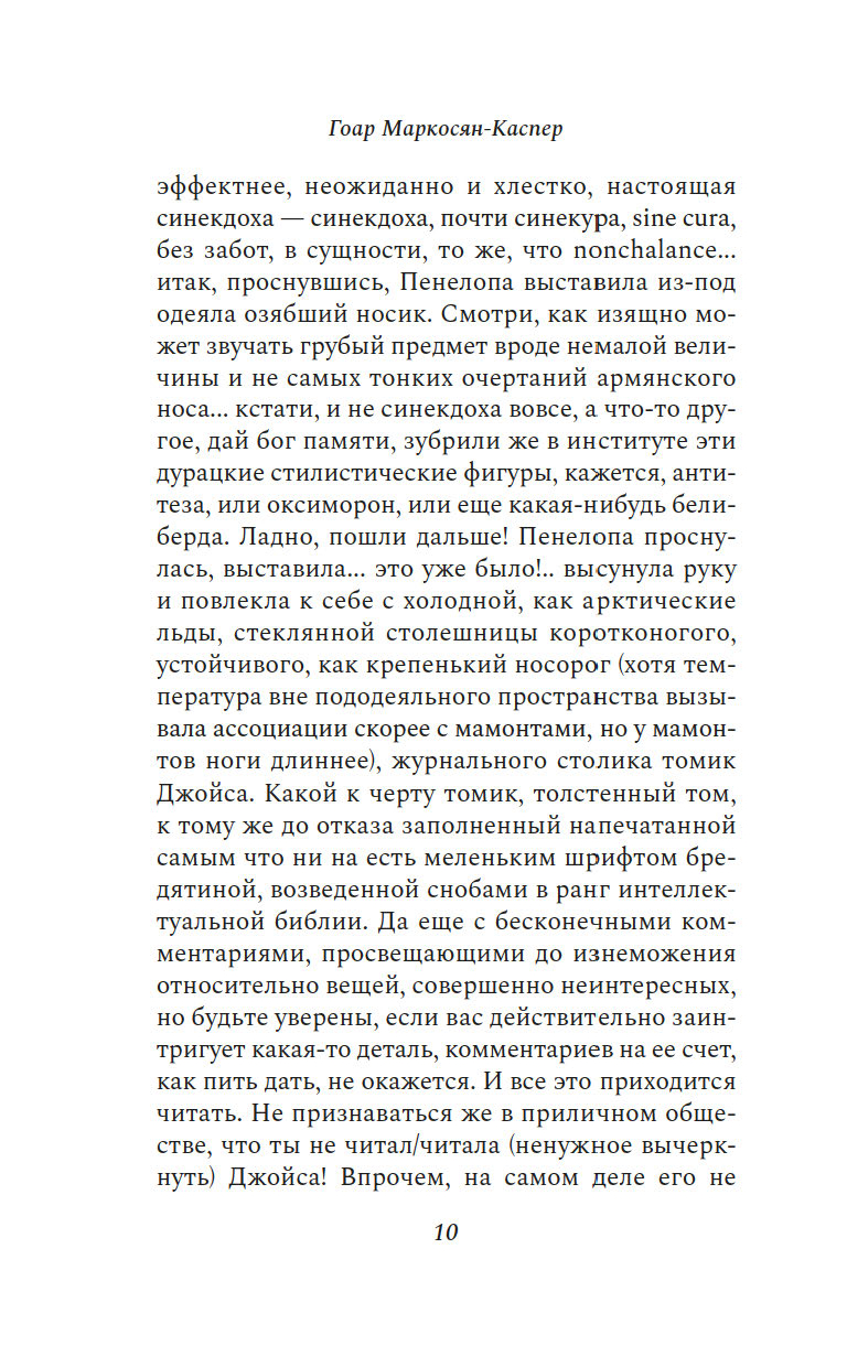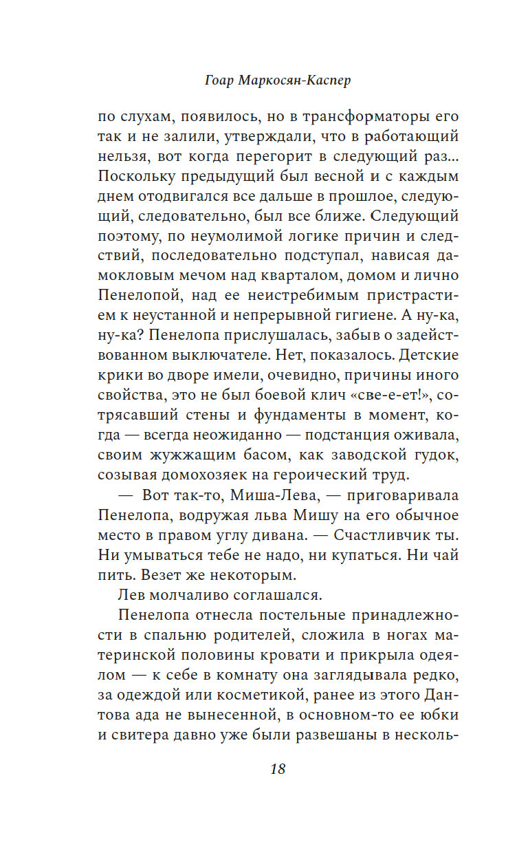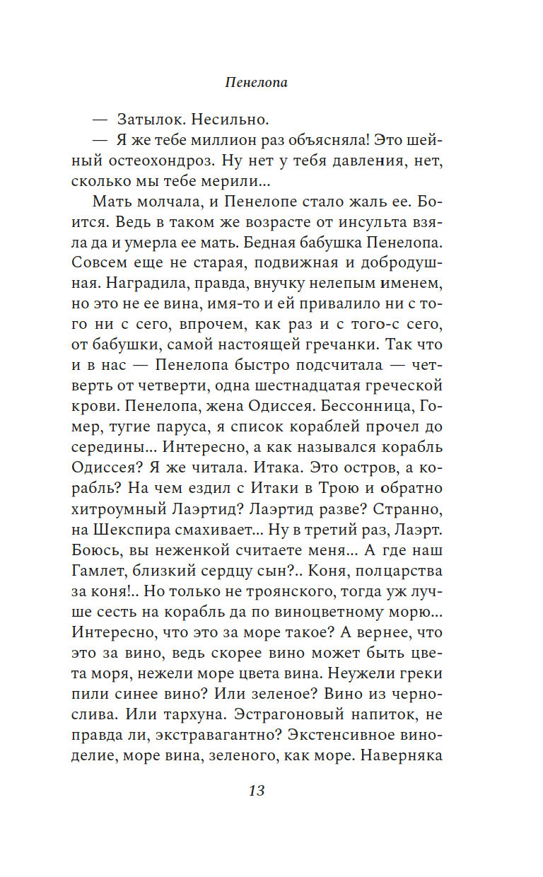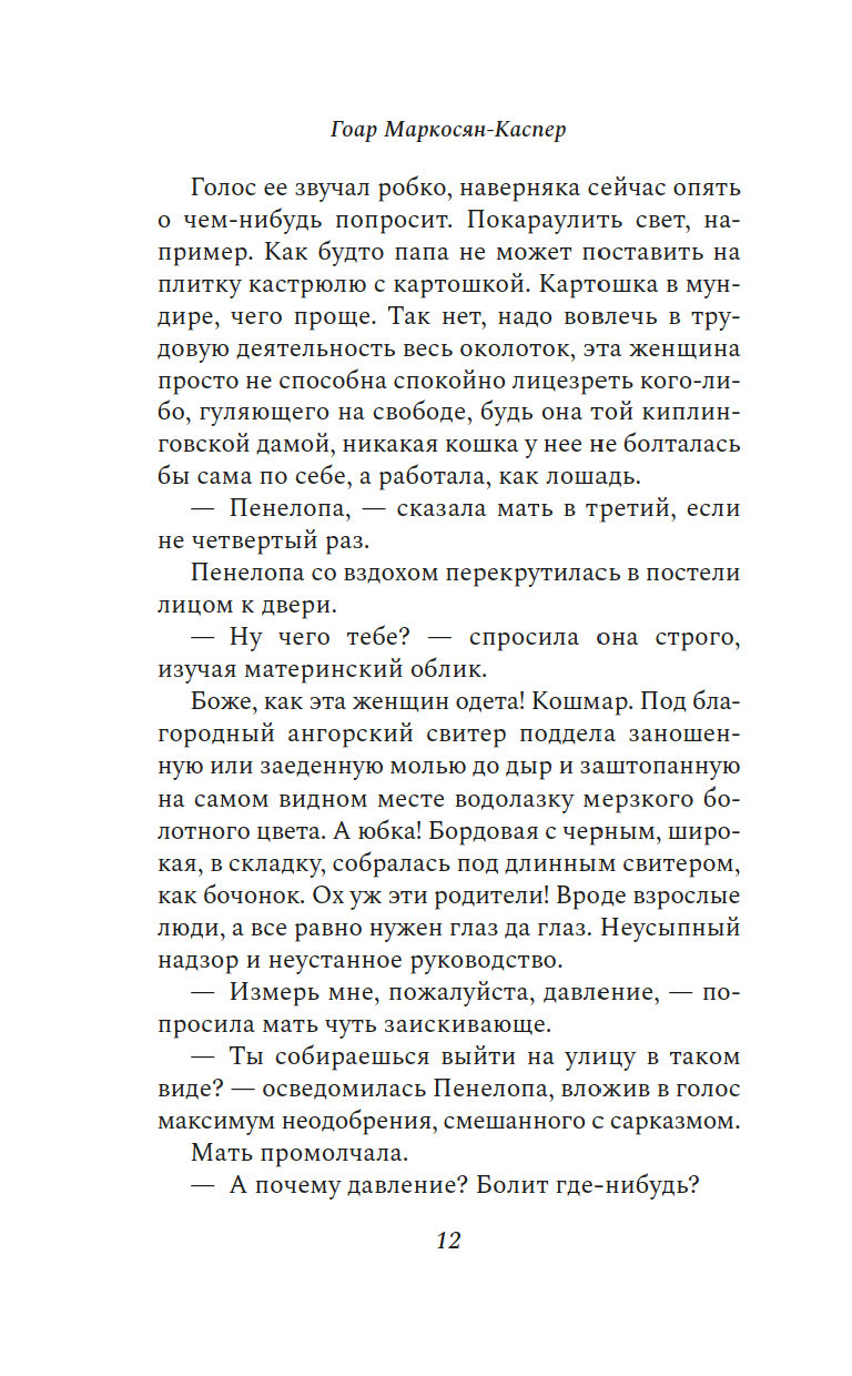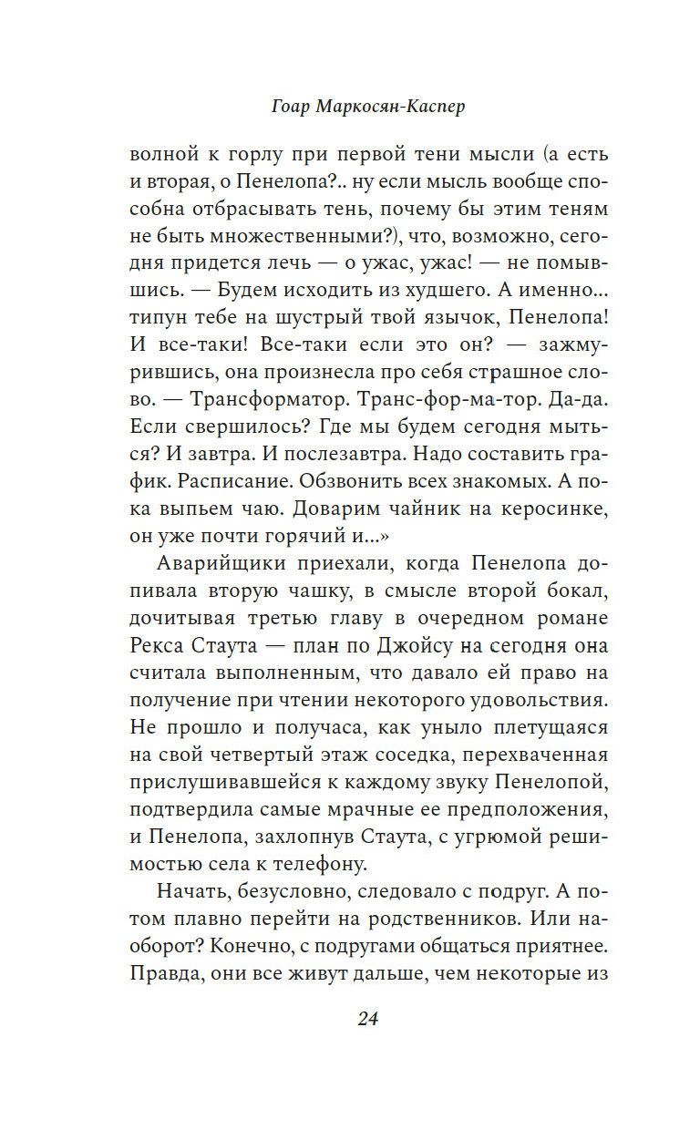 "Пенелопу разбудил солнечный луч". Так начинается этот остроумный, искрометный, полный словесной игры роман об одном дне, который нам предстоит прожить с героиней, странствуя из одного ереванского дома в другой и наслаждаясь тем теплом, которое разлито по этим страницам.