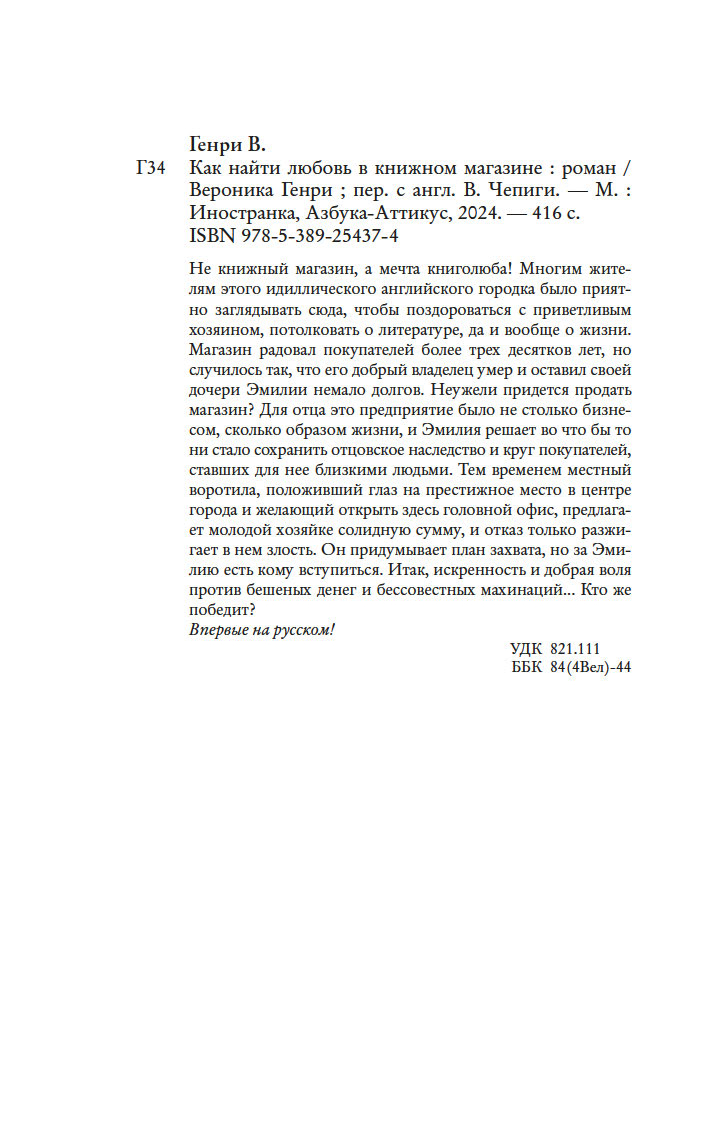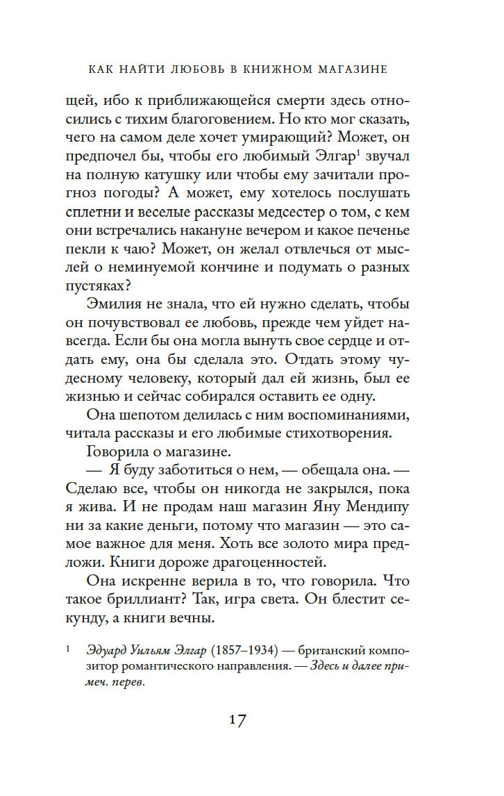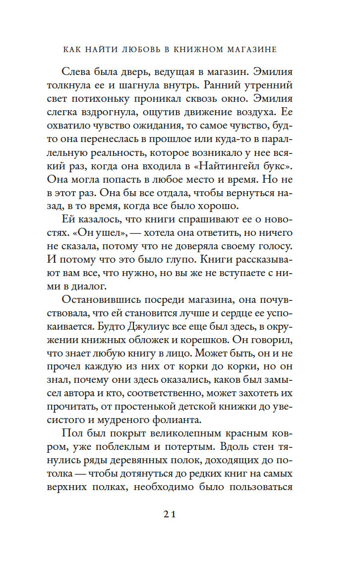 Не книжный магазин, а мечта книголюба! Многим жителям этого идиллического английского городка было приятно заглядывать сюда, чтобы поздороваться с приветливым хозяином, потолковать о литературе, да и вообще о жизни. Магазин радовал покупателей более трех десятков лет, но случилось так, что его добрый владелец умер и оставил своей дочери Эмилии немало долгов. Неужели придется продать магазин? Для отца это предприятие было не столько бизнесом, сколько образом жизни, и Эмилия решает во что бы то ни стало сохранить отцовское наследство и круг покупателей, ставших для нее близкими людьми. Тем временем местный воротила, положивший глаз на престижное место в центре города и желающий открыть здесь головной офис, предлагает молодой хозяйке солидную сумму, и отказ только разжигает в нем злость. Он придумывает план захвата, но за Эмилию есть кому вступиться. Итак, искренность и добрая воля против бешеных денег и бессовестных махинаций... Кто же победит?