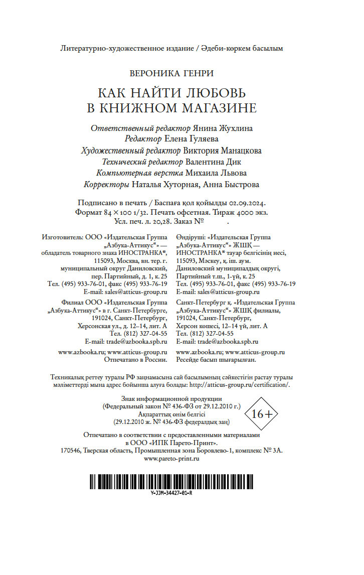 | Изготовитель | ООО "Издательство "Иностранка". 109017, РФ, г. Москва, ул. Пятницкая, 41 |