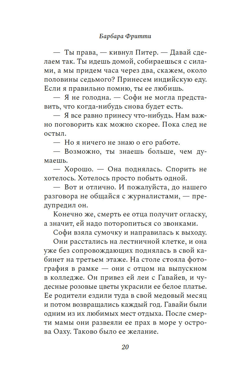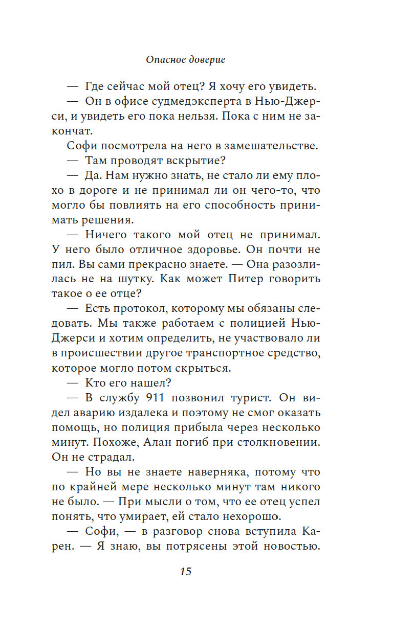Перед смертью он успевает оставить загадочные и сбивающие с толку сообщения, в которых просит дочь не доверять никому, особенно его коллегам и даже друзьям. Он настаивает, чтобы Софи бросила все и бежала. Что произошло? Почему отец так поступил? А главное – кто виновен в его гибели? Без ответов на эти вопросы Софи не может жить дальше. Кроме того, она явно в опасности – ее преследуют и даже пытаются убить.