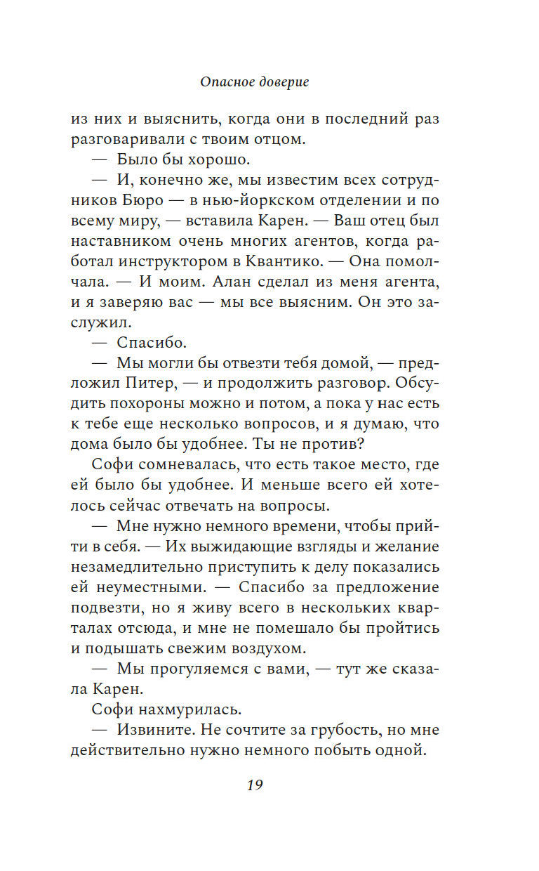 Деймон для Софи давно мужчина из прошлого. Хочет ли она продолжить отношения? Пожалуй, да. Но не такой ценой. Они снова встречаются после гибели в автокатастрофе ее отца – агента ФБР.