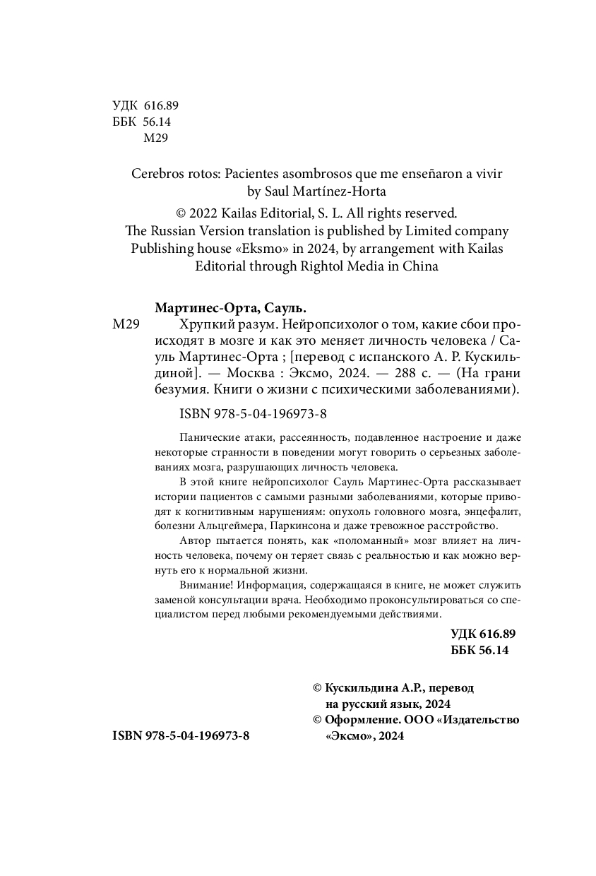 | Название в оригинале | Cerebros Rotos: Pacientes Asombrosos Que Me Enseñaron A Vivir |