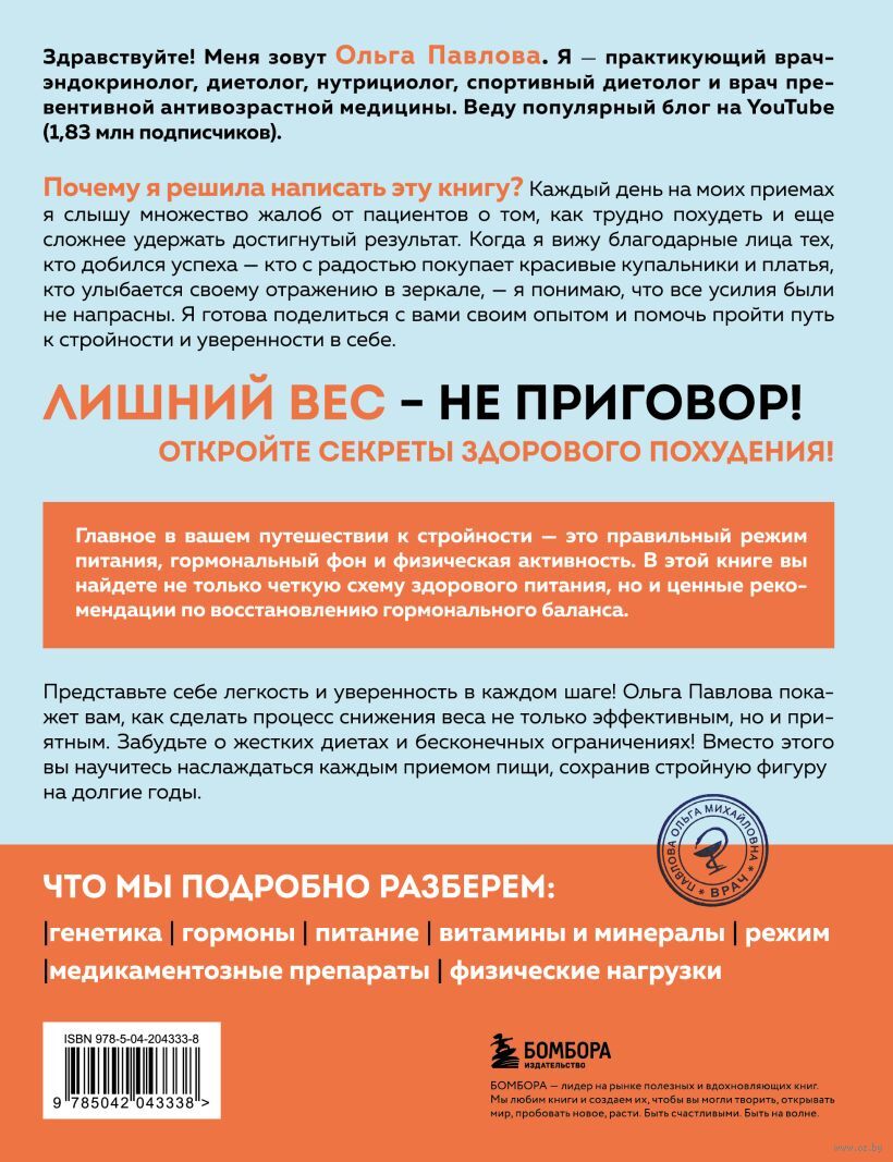 Вы устали от бесконечных диет и временных результатов? Пора изменить подход к похудению! В этой книге Ольга Павлова, опытный врач-эндокринолог и диетолог, раскроет вам секреты, которые помогут вам не только сбросить лишние килограммы, но и сохранить стройную фигуру на долгие годы.
