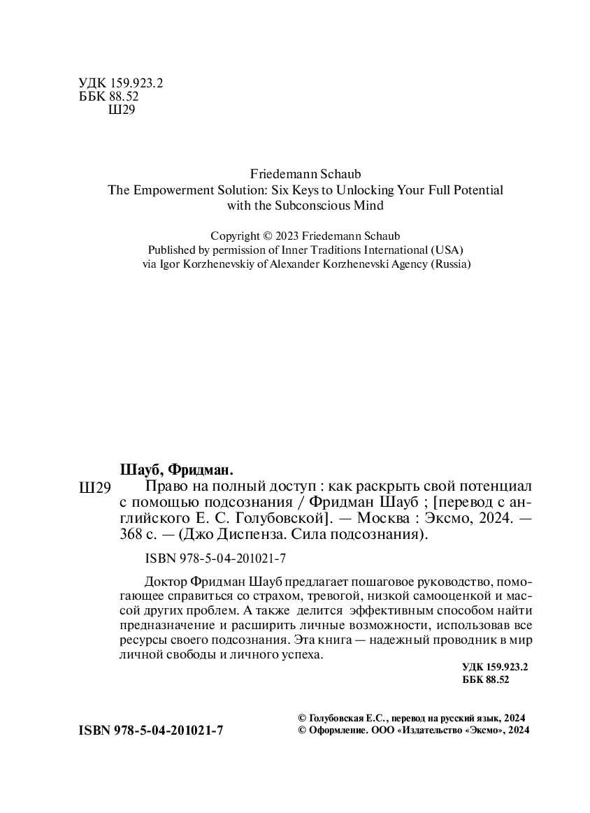| Название в оригинале | The Empowerment Solution: Six Keys to Unlocking Your Full Potential with the Subconscious Mind by Friedemann Schaub |