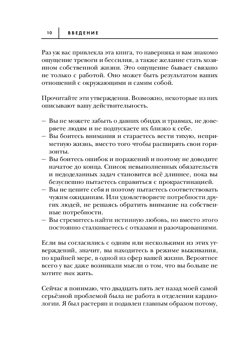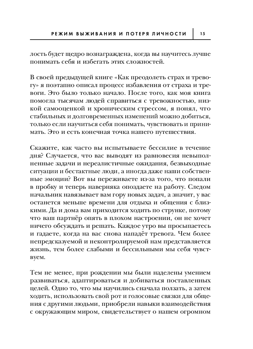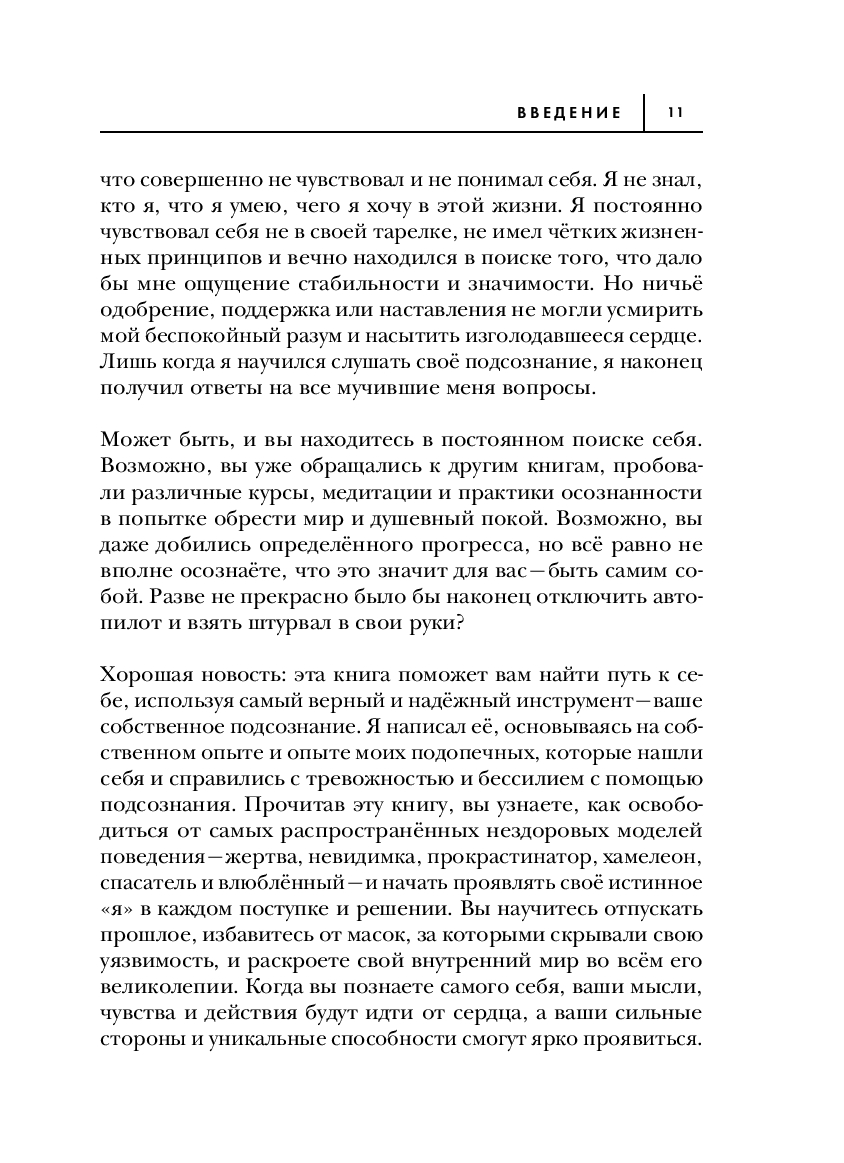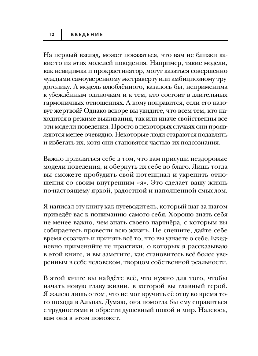 Многие из нас ищут ответы, которые помогли бы справиться с тревогой, низкой самооценкой, неуверенностью в себе, бессонницей и множеством других проблем. Доктор философии и медицины Фридман Шауб собрал в книге самые действенные инструменты, которые освободят от оков беспокойства и сомнений в себе, а затем расширят возможности и помогут достичь вершин, к которым вы стремитесь. Книга обязательна к прочтению для всех, кто хочет обладать правом полного доступа к своему подсознанию и пути к своему личному успеху.