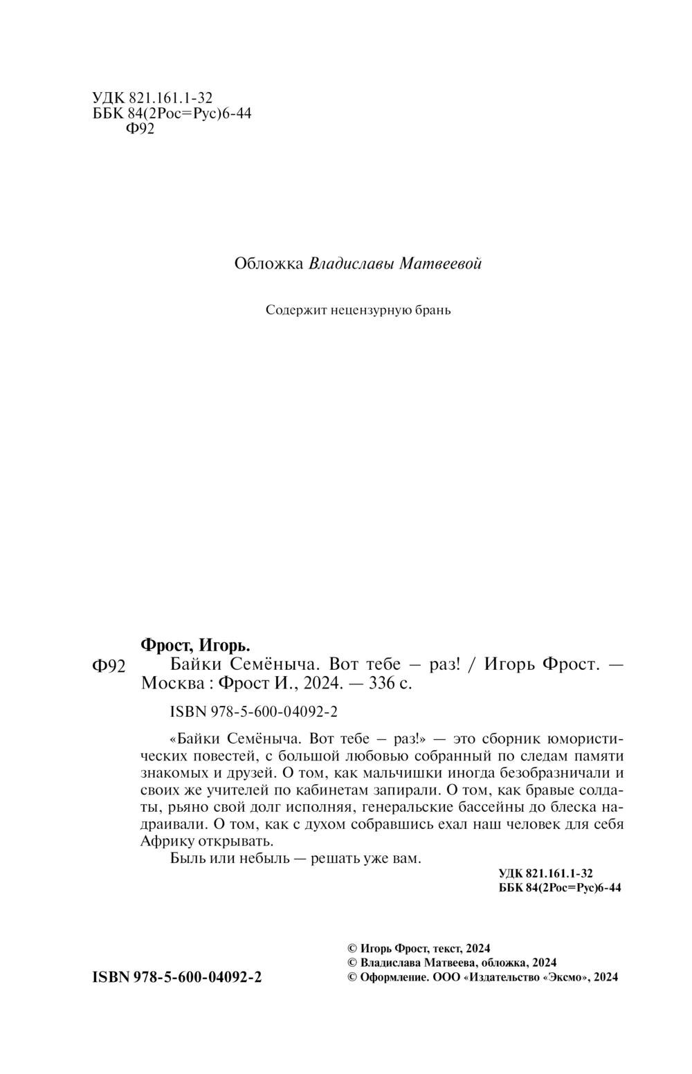 | Изготовитель | ООО «Издательство «Эксмо». РФ, г. Москва, ул. Клары Цеткин, 18, корп. 5 |