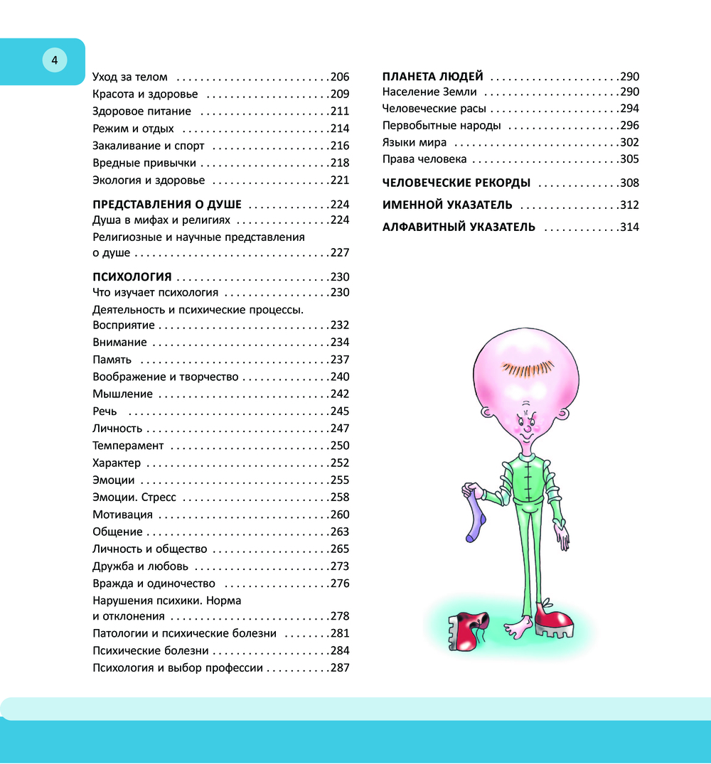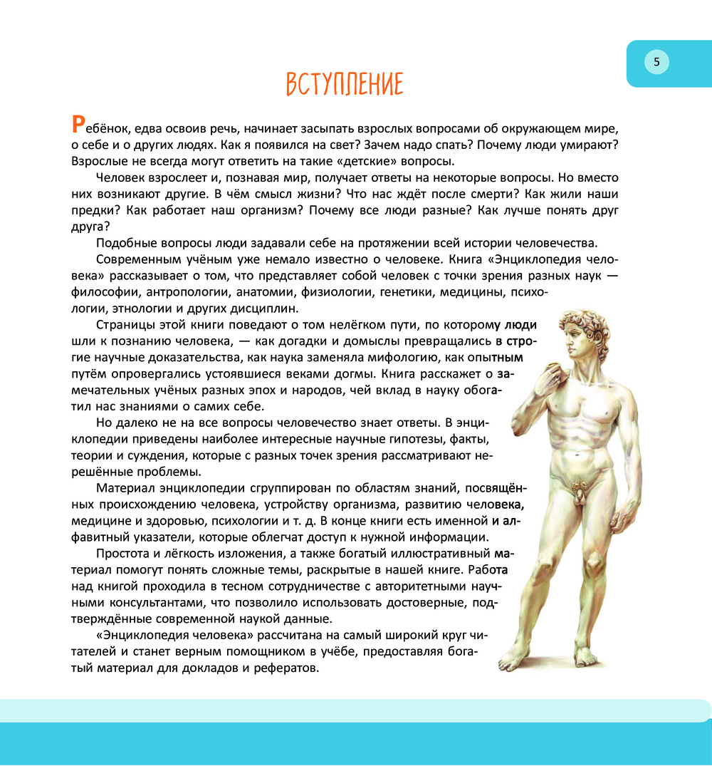 В этой полной энциклопедии есть всё, что необходимо знать о человеке, его происхождении, эволюции, анатомии и психологии! Самые увлекательные и полезные факты о рождении, развитии и взрослении нашего организма, способностях мозга, первобытных предках человека, взаимодействии людей в современном обществе, рекомендации для здорового образа жизни, занимательные данные из области медицины и генетики – и всё это в одной книге. Энциклопедия содержит факты не только об организме человека, но и о замечательных учёных разных эпох и народов, чей вклад в науку обогатил нас знаниями о самих себе. Эта захватывающая и разнообразная информация привлечёт интерес как любого подростка, так и взрослого человека. Автор и иллюстратор книги – Юлия Школьник, создавшая множество популярных детских энциклопедий.