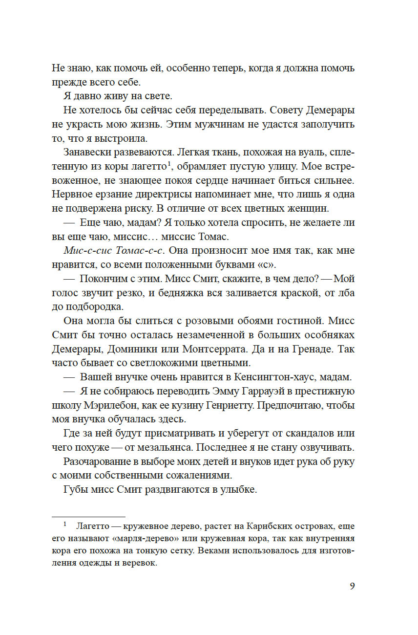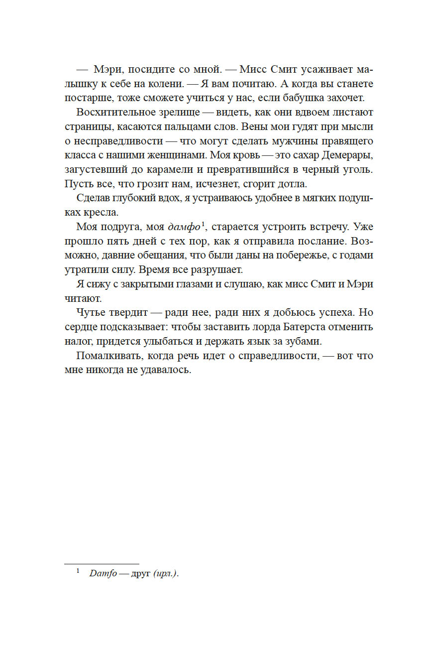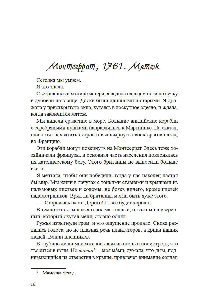 Рожденная в рабстве на крошечном карибском острове Монтсеррат, Дороти Кирван сумела выкупить свободу у своего отца – ирландского плантатора, а потом добилась освобождения сестры и матери. Ценой невероятных усилий ей удалось стать богатой и влиятельной женщиной, владелицей домов и земель, от сахарных плантаций Доминики и Барбадоса до роскошного отеля в Демераре на южноамериканском континенте. Это рассказ о реальной исторической фигуре – женщине, сумевшей пробить себе путь наверх в чудовищных условиях рабства и колониализма, женщине, не боявшейся любить и не останавливавшейся ни перед чем ради любимых.