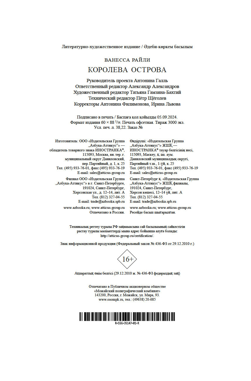 | Изготовитель | ООО "Издательство "Иностранка". 109017, РФ, г. Москва, ул. Пятницкая, 41 |