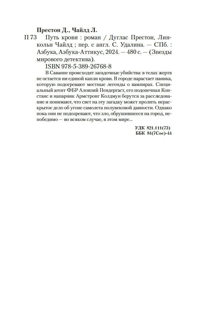 В Саванне происходят загадочные убийства: в телах жертв не остается ни единой капли крови. В городе нарастает паника, которую подогревают местные легенды о вампирах. Специальный агент ФБР Алоизий Пендергаст, его подопечная Констанс и напарник Армстронг Колдмун берутся за расследование и понимают, что свет на эту загадку может пролить нераскрытое дело об угоне самолета полувековой давности. Однако пока они не подозревают, что зло, обрушившееся на город, непобедимо – во всяком случае, в этом мире...