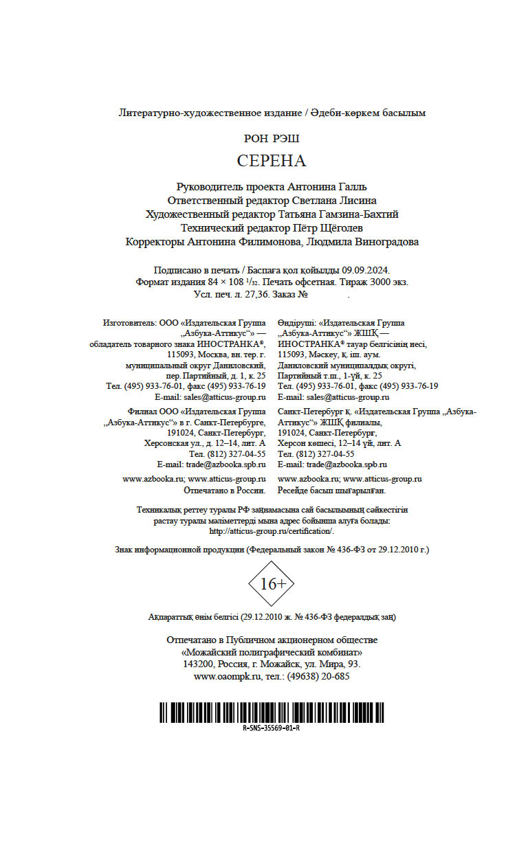 | Изготовитель | ООО "Издательство "Иностранка". 109017, РФ, г. Москва, ул. Пятницкая, 41 |