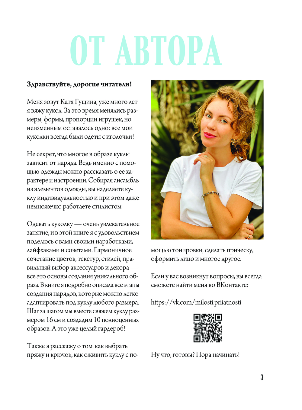 В своей новинке популярный блогер Екатерина Гущина приглашает вас за кулисы недели вязаной моды. Посетите модные столицы мира и узнайте все секреты и лайфхаки от знаменитых кутюрье. Моделями выступят москвичка Юля, петербурженка Люба, француженка Софи, американка Ханна и англичанка Шарлотта. Представьте собственную стильную коллекцию одежды для кукол!