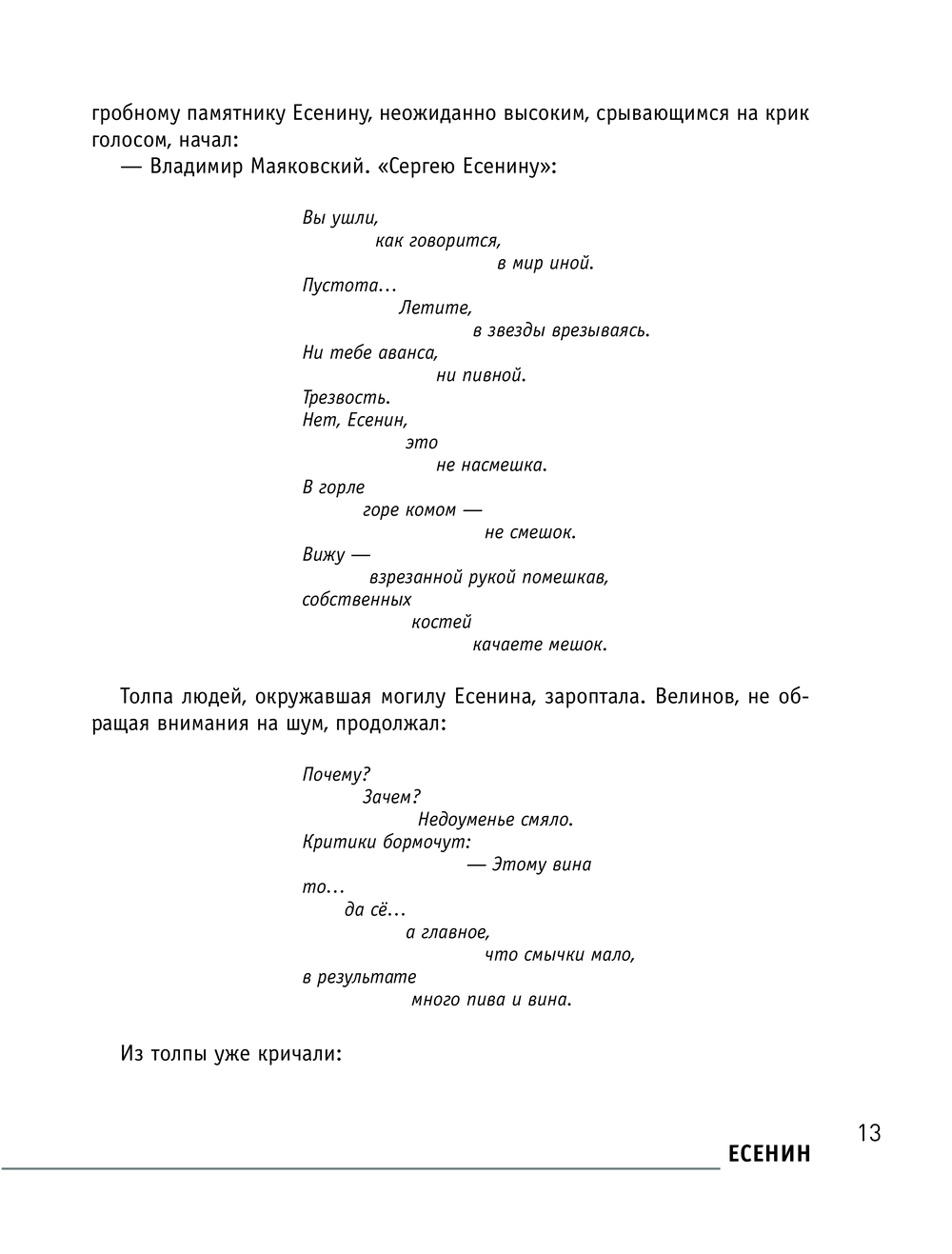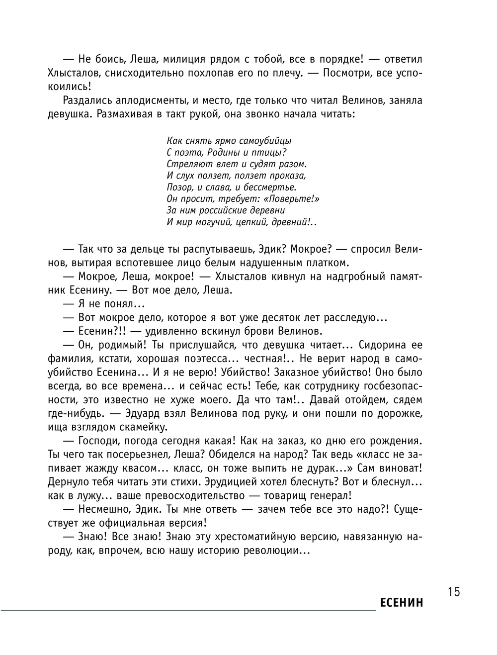 О Есенине писали много и долго. Одни – с подобострастным обожанием, прикрывая нелицеприятные моменты из жизни сти-хами, другие — с удовольствием выставляя скандалы напоказ.Его восхваляли, критиковали. Но так о нем еще не писал никто!