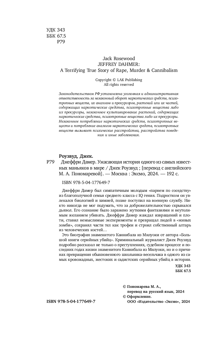| Название в оригинале | Jeffrey Dahmer: A Terrifying True Story of Rape, Murder & Cannibalism by Jack Rosewood |