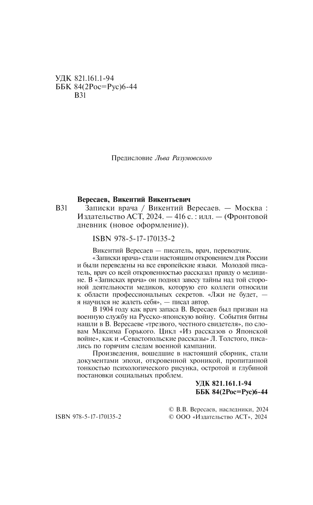 Литературный дебют Вересаева. Автобиографическая книга, которая впервые увидела свет в 1901 году – и сразу принесла молодому автору широкую известность.