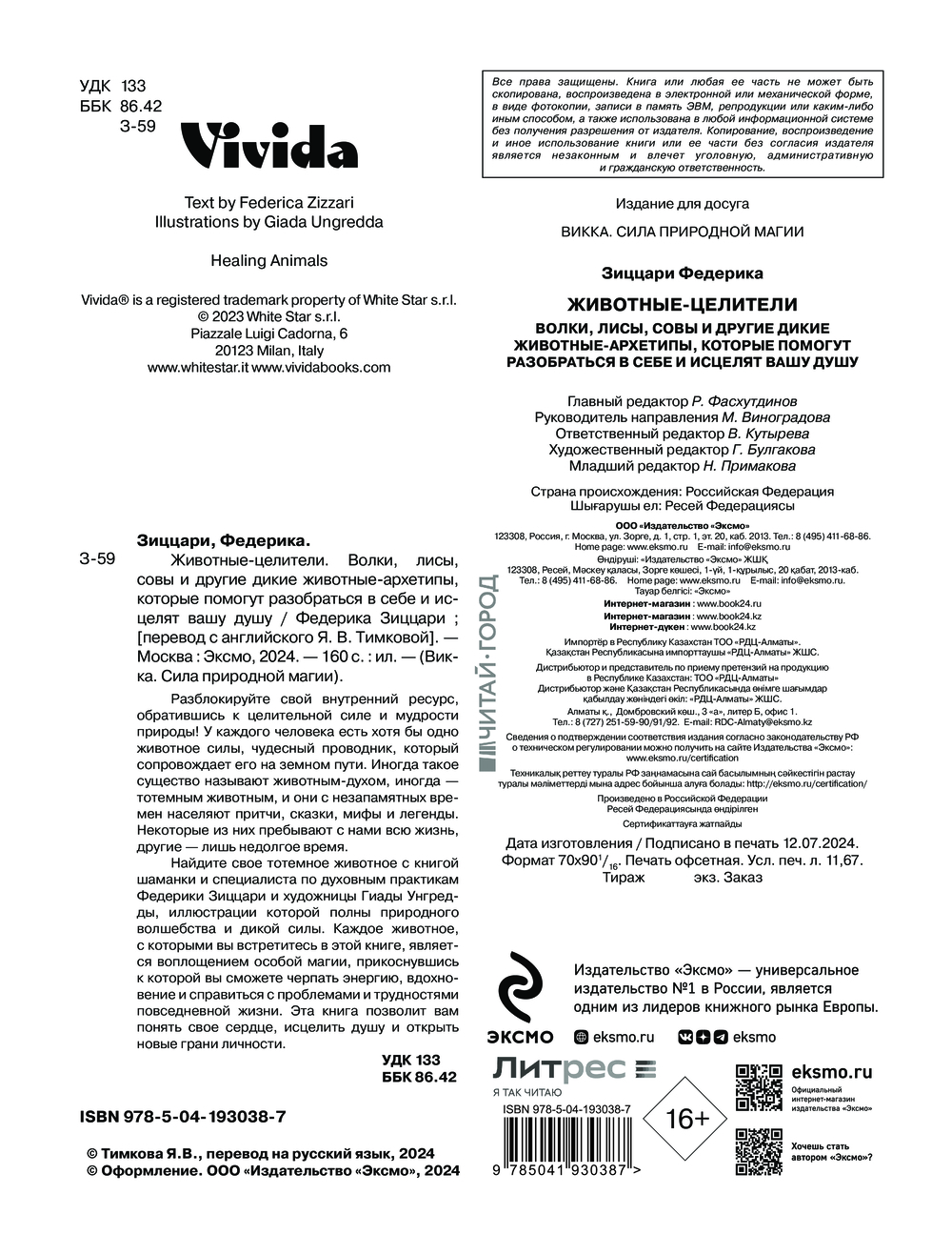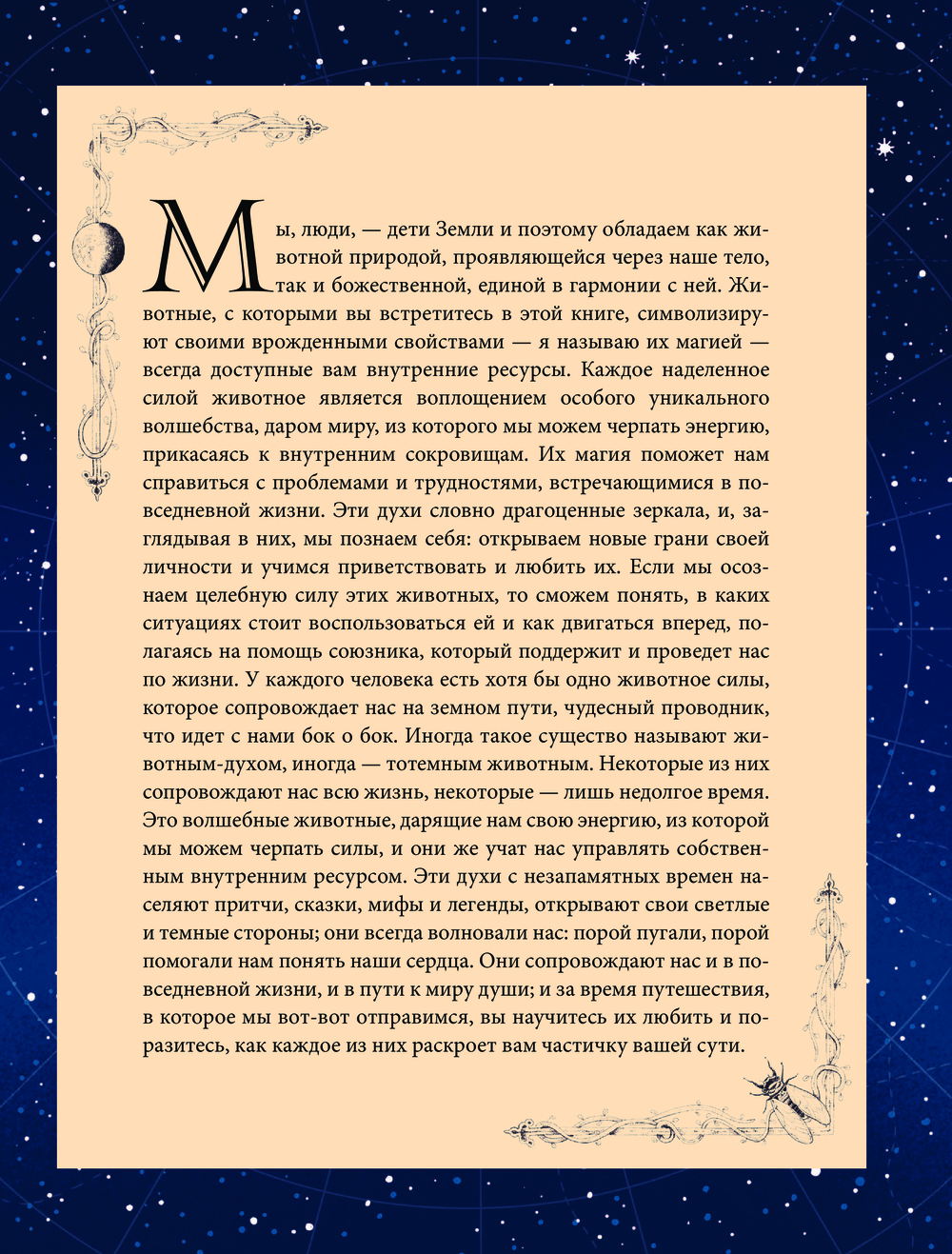 Разблокируйте свой внутренний ресурс, обратившись к целительной силе и мудрости природы! У каждого человека есть хотя бы одно животное силы, чудесный проводник, который сопровождает его на земном пути. Иногда такое существо называют животным-духом, иногда – тотемным животным и они с незапамятных времен населяют притчи, сказки, мифы и легенды. Некоторые из них пребывают с нами всю жизнь, другие – лишь недолгое время. Найдите свое тотемное животное с книгой шаманки и специалиста по духовным практикам Федерики Зиццари и художницы Гиады Унгредды, иллюстрации которой полны природного волшебства и дикой силы. Каждое животное, с которыми вы встретитесь в этой книге, является воплощением особой магии, прикоснувшись к которой вы сможете черпать энергию, вдохновение и справиться с проблемами и трудностями повседневной жизни. Эта книга позволит вам понять свое сердце, исцелить душу и открыть новые грани личности.