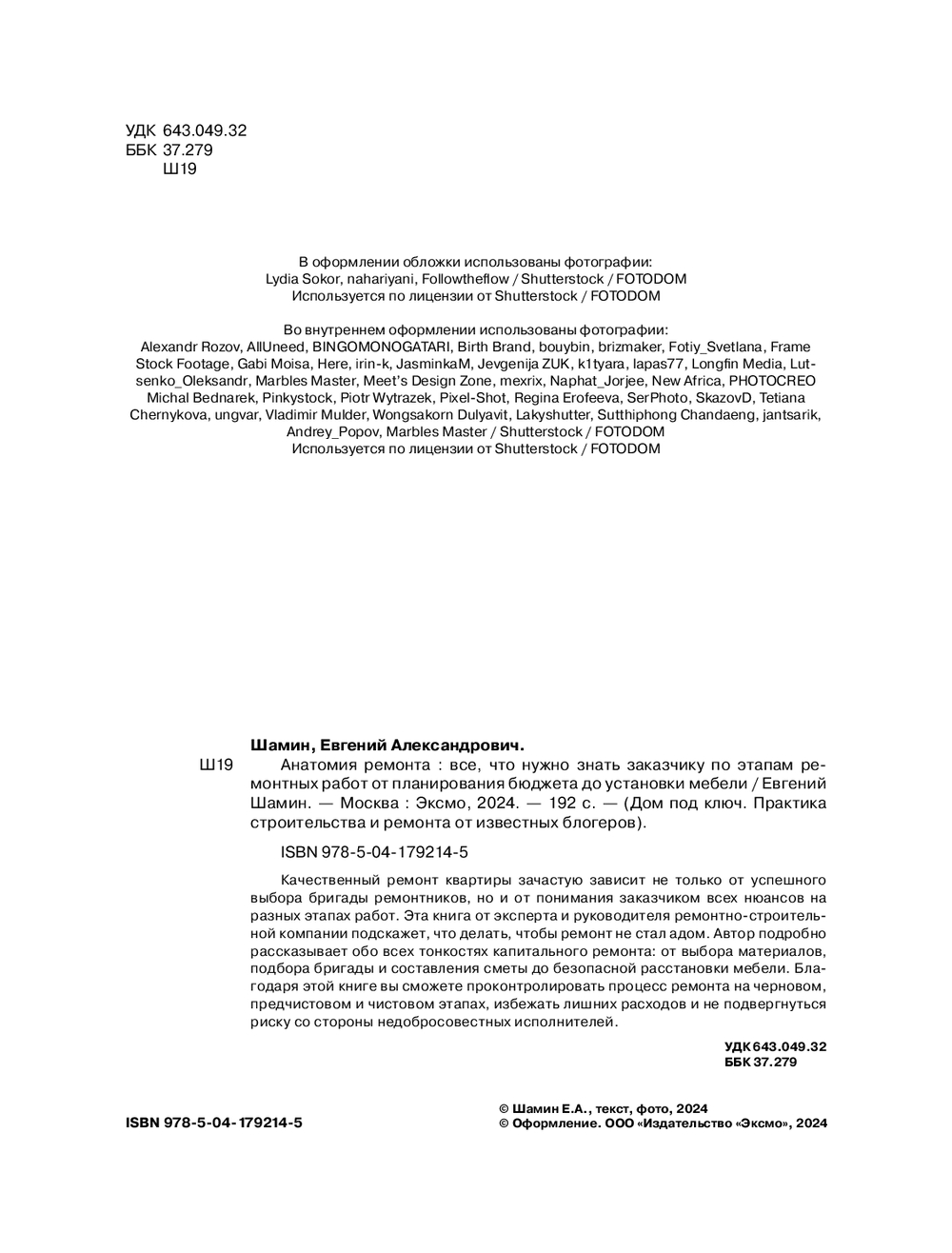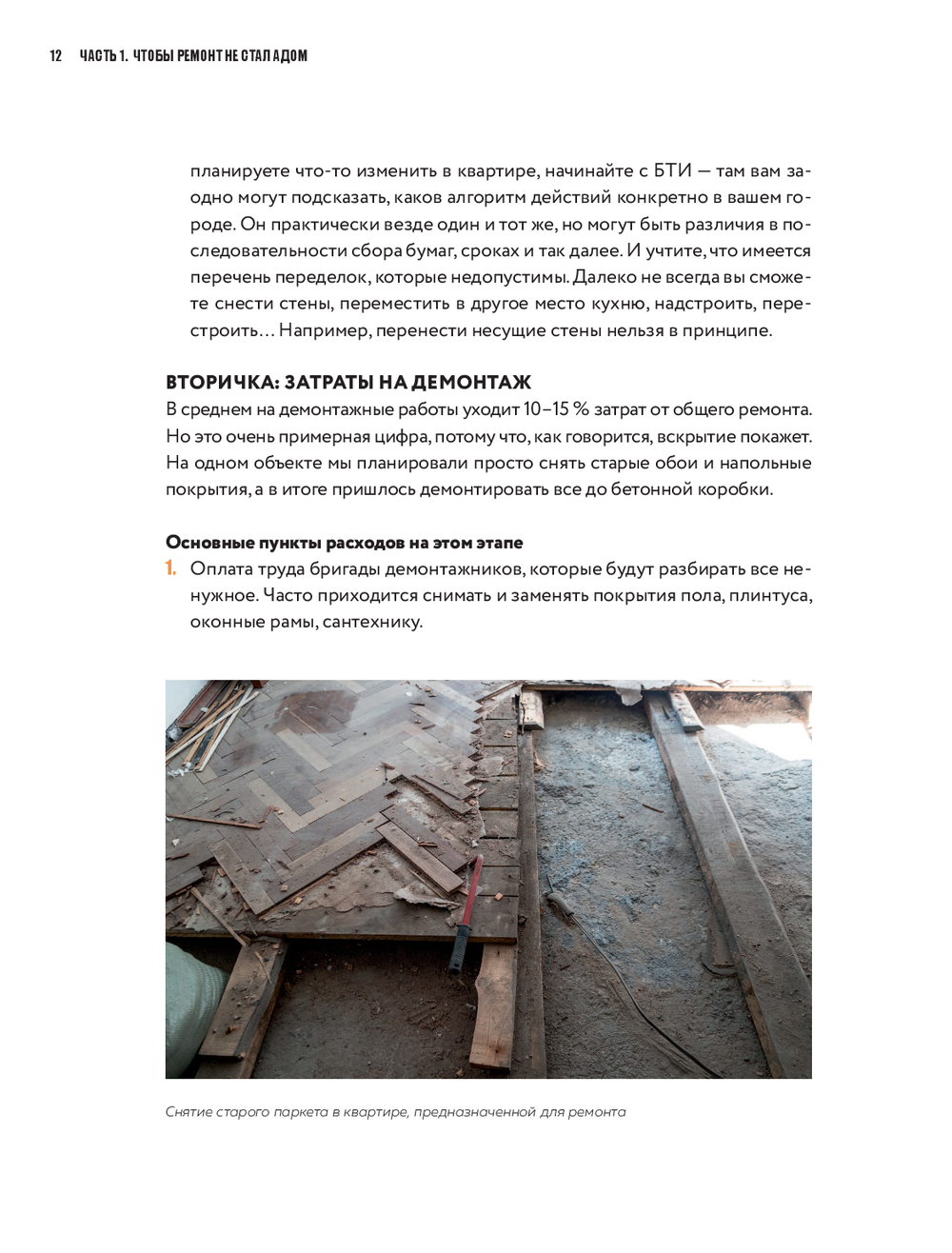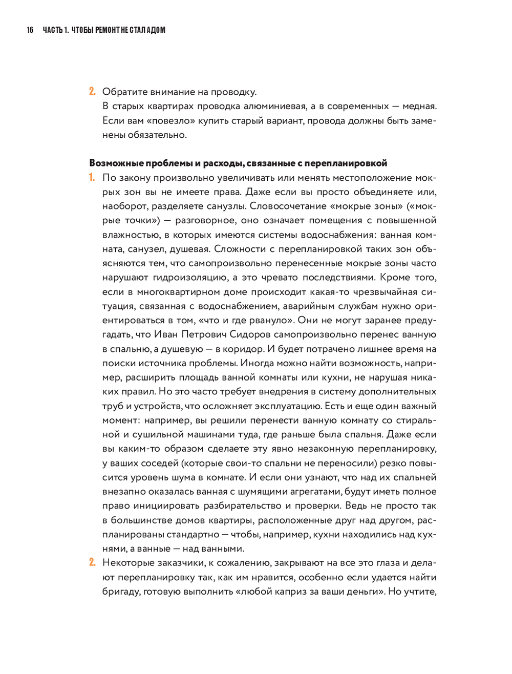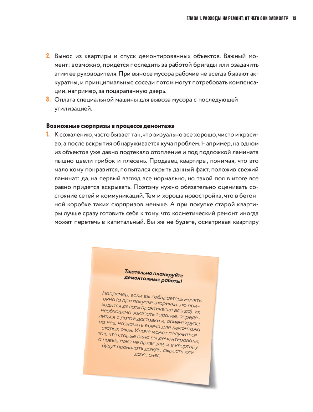 Качественный ремонт квартиры зачастую зависит не только от успешного выбора бригады ремонтников, но и от понимания заказчиком всех нюансов на разных этапах работ. Эта книга от эксперта и руководителя ремонтно-строительной компании подскажет что делать, чтобы ремонт не стал адом. Автор подробно рассказывает обо всех тонкостях капительного ремонта: от выбора материалов, подбора бригады и составления сметы до безопасной расстановки мебели. Благодаря этой книге вы сможете проконтролировать процесс ремонта на черновом, предчистовом и чистовом этапах, избежать лишних расходов и не подвергнуться риску со стороны недобросовестных исполнителей.