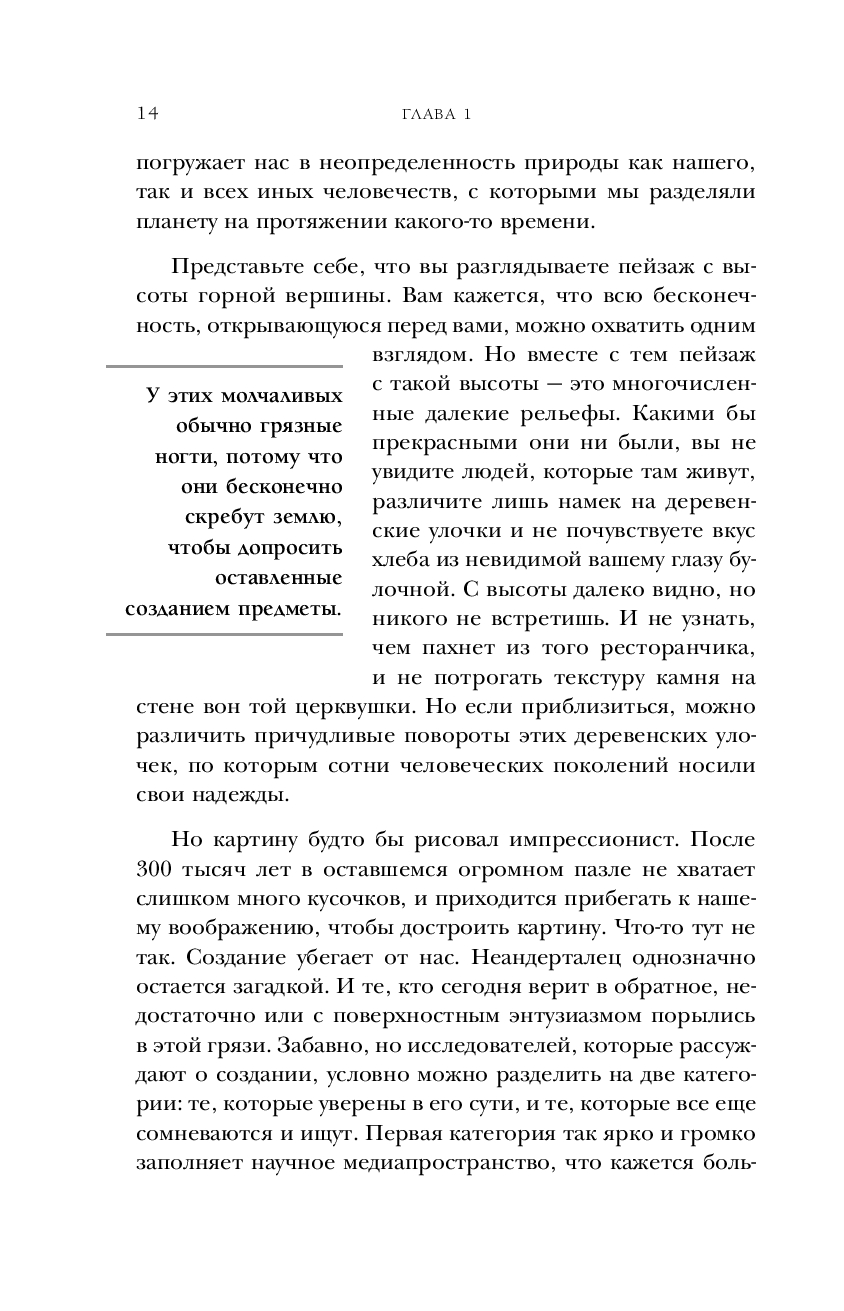 Эта научная и отчасти приключенческая история написана живо и остроумно. Вместе с автором мы проследим путь загадочных неандертальцев, пытаясь расшифровать их реальные истории через те детали, которые удалось найти антропологам.