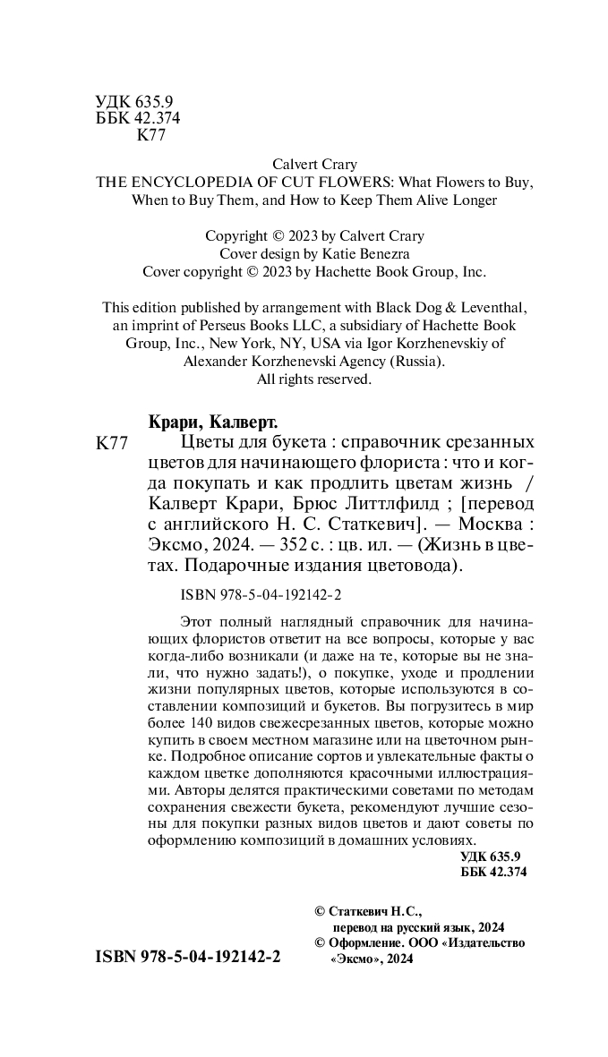 | Название в оригинале | The Encyclopedia of Cut Flowers: What Flowers to Buy, When to Buy Them, and How to Keep Them Alive Longer |