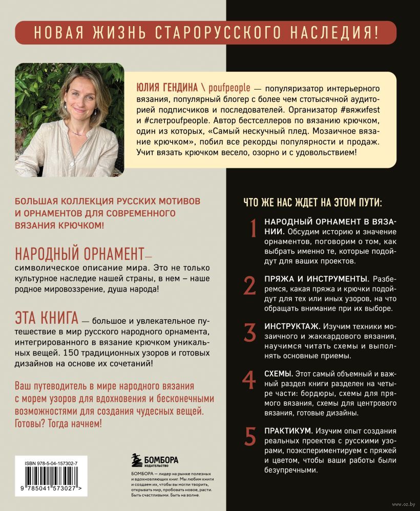 Эта книга – большое и увлекательное путешествие в мир русского народного орнамента, интегрированного в вязание крючком уникальных вещей. 150 традиционных узоров и готовых дизайнов на основе их сочетаний!