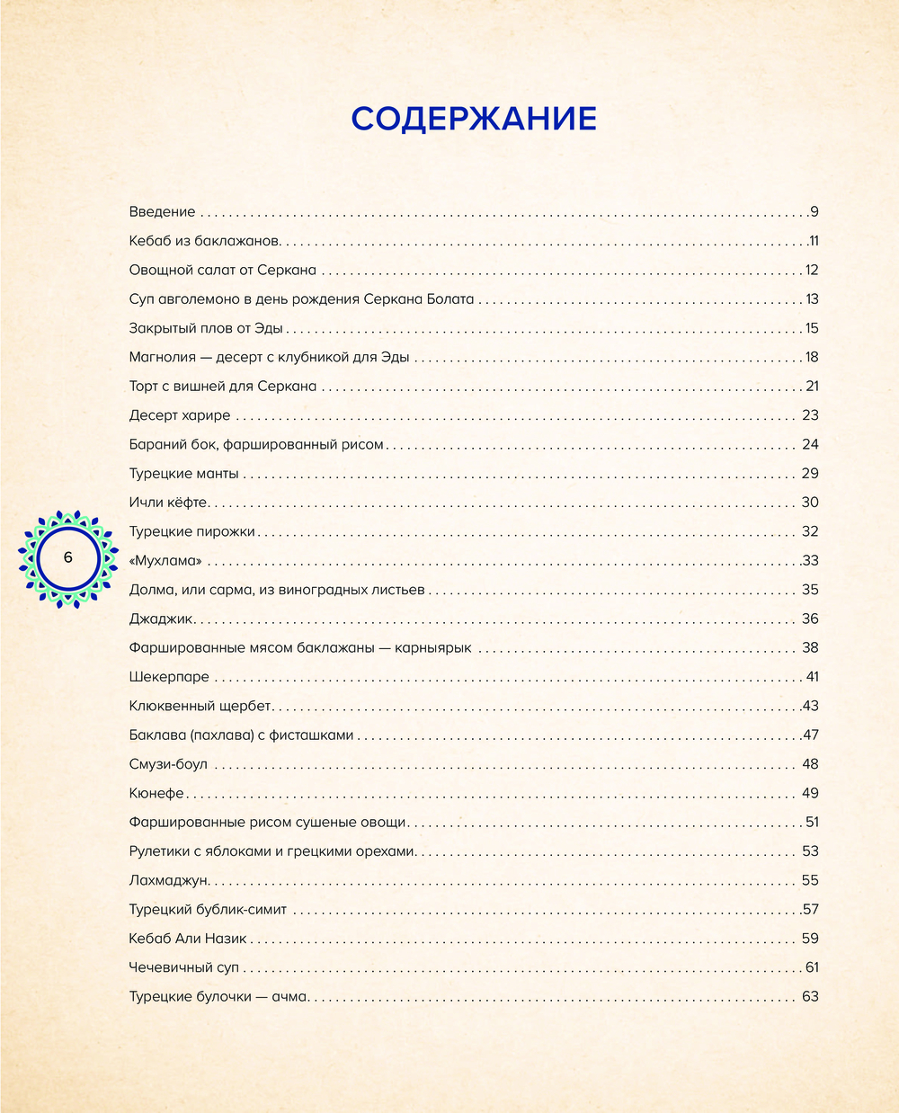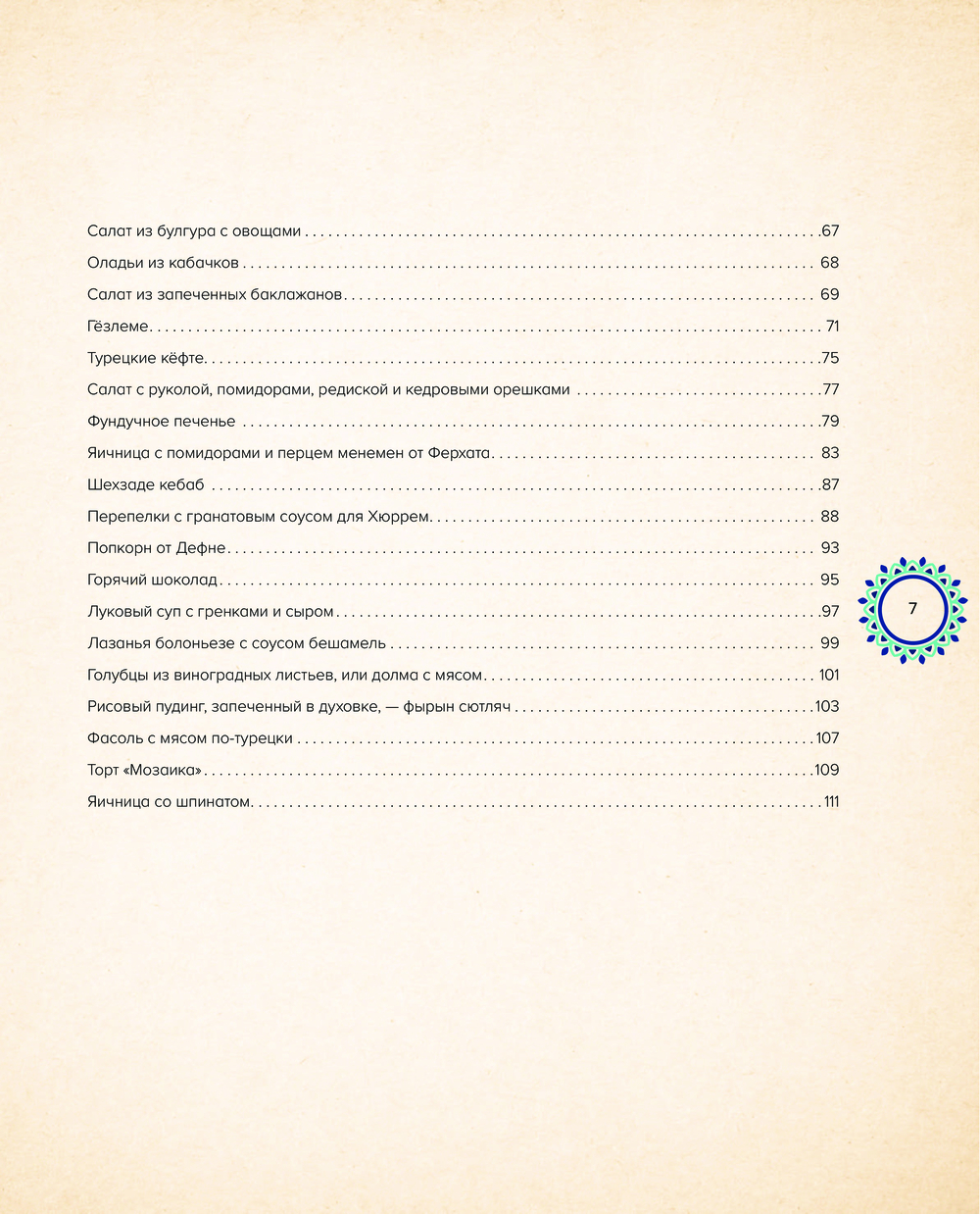 Если вы обожаете проводить вечера за просмотром турецких сериалов, то эта книга для вас! Вас ждут подробные рецепты блюд, которые появлялись в эпизодах "Постучись в мою дверь", "Любовь напрокат", "Великолепный век", и многое другое! Теперь вовсе необязательно идти в ресторан национальной кухни или быть шеф-поваром, чтобы их приготовить! Попробуйте ичли кёфте с кухни семейства Унал, плов от Эды, или гёзлеме как у мамы Санем! Будьте уверены, что процесс готовки принесет вам удовольствие и позволит проникнуться атмосферой турецкой кухни, а блюда получатся настолько вкусными, что вам и вашим близким так и захочется сказать: "Чок леззетли!"