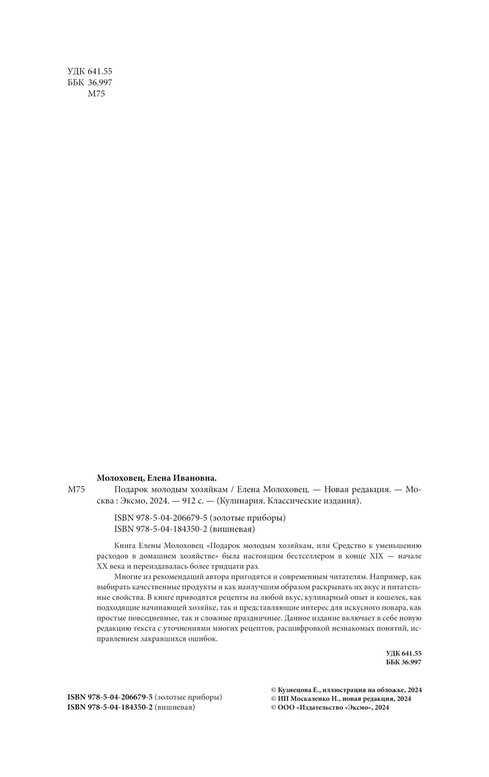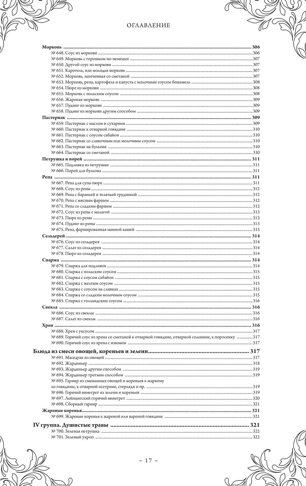 Многие из рекомендаций автора пригодятся и современным читателям. Например, как выбирать качественные продукты и как наилучшим образом раскрывать их вкус и питательные свойства. В книге приводятся рецепты на любой вкус, кулинарный опыт и кошелек, как подходящие начинающей хозяйке, так и представляющие интерес для искусного повара, как простые повседневные, так и сложные праздничные. Данное издание включает в себе новую редакцию текста с уточнениями многих рецептов, расшифровкой незнакомых понятий, исправлением закравшихся ошибок.