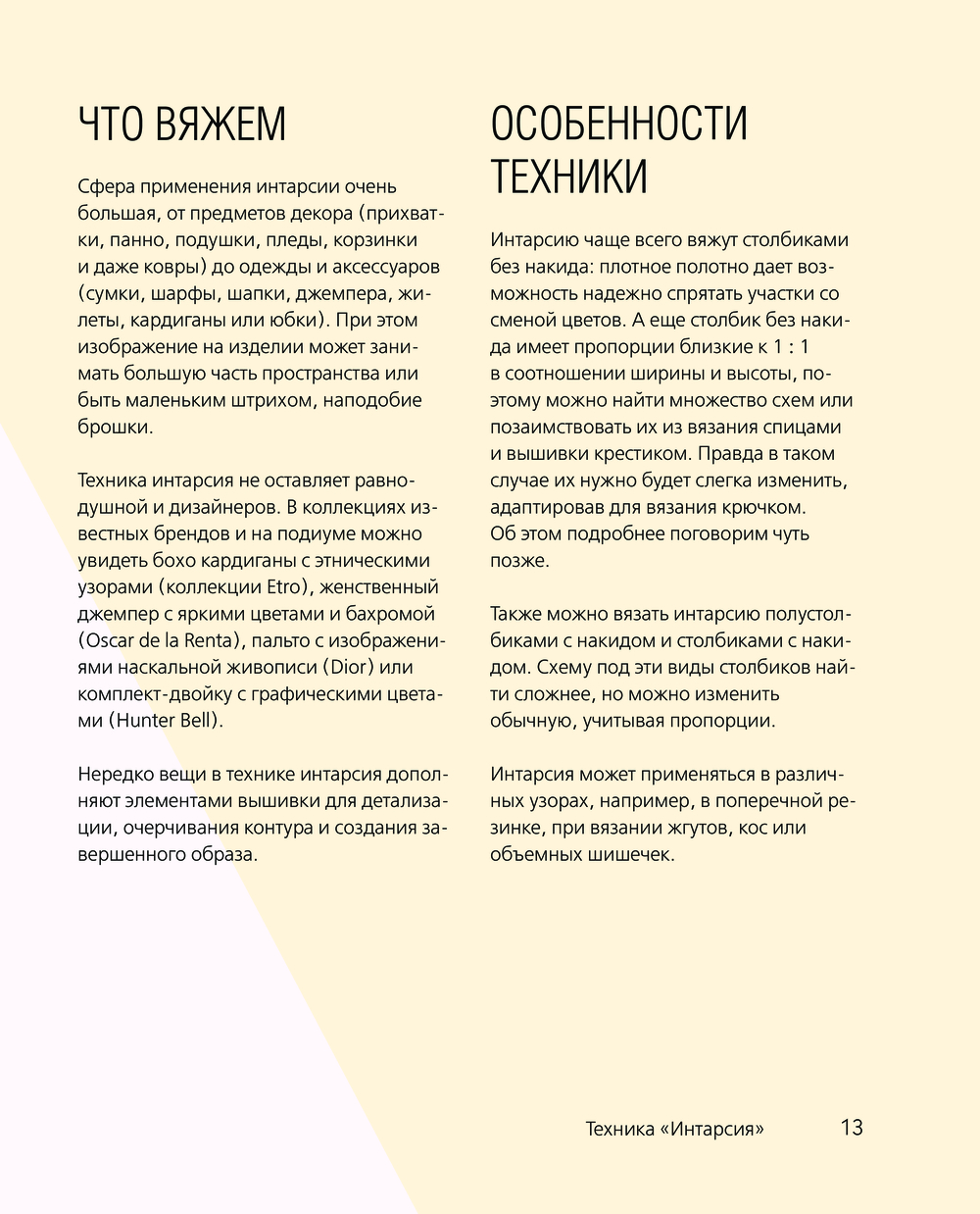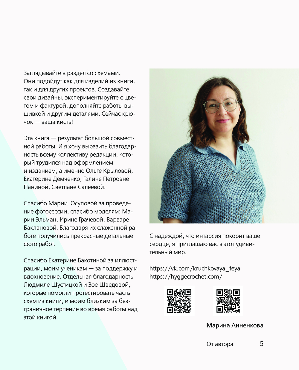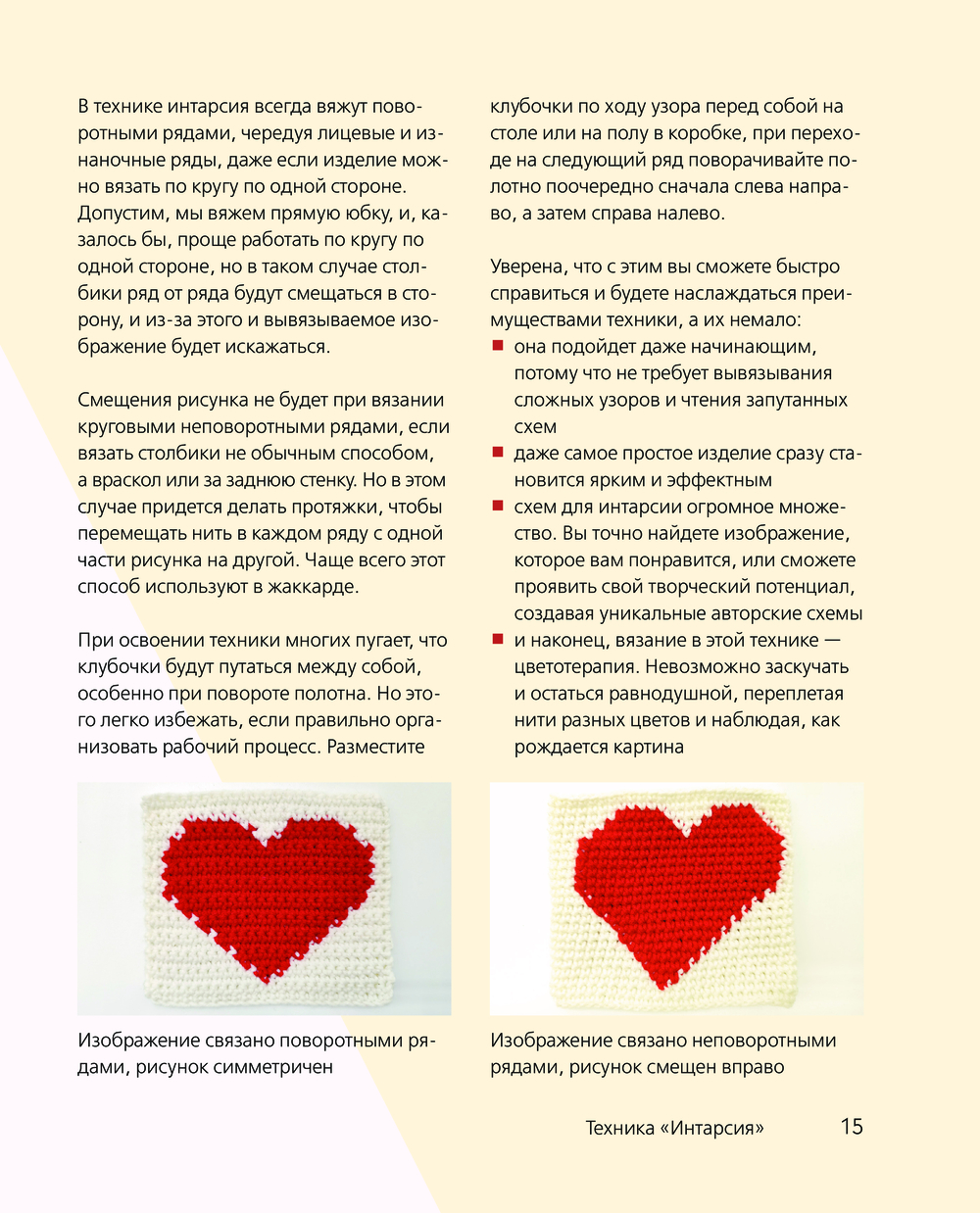 В книге собрана исчерпывающая информация для изучения техники интарсия. От выбора нити, крючка и рисунка до разработки схемы, тонкостей сочетания цветов и приемов вязания. А практику обеспечат несколько подробных, прекрасно иллюстрированных пошаговых мастер-классов с расчетными и попетельными описаниями по вязанию авторских моделей шарфа, шоппера, кардигана, жилета и т.п. на любой размер с учетом особенностей вашей фигуры.