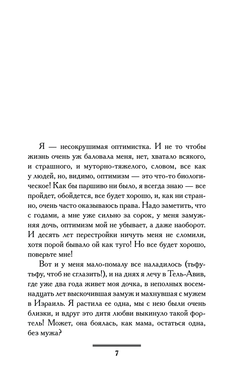 Героиня романа Кира Мурашова отправляется в Израиль повидать дочь и неожиданно встречает человека, которого не видела двадцать лет. Когда-то их отношения длились всего два дня... Он и теперь убеждает героиню в своей любви, но стоит ли верить этим словам?..