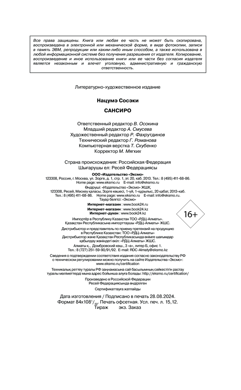| Изготовитель | ООО «Издательство «Эксмо». РФ, г. Москва, ул. Клары Цеткин, 18, корп. 5 |