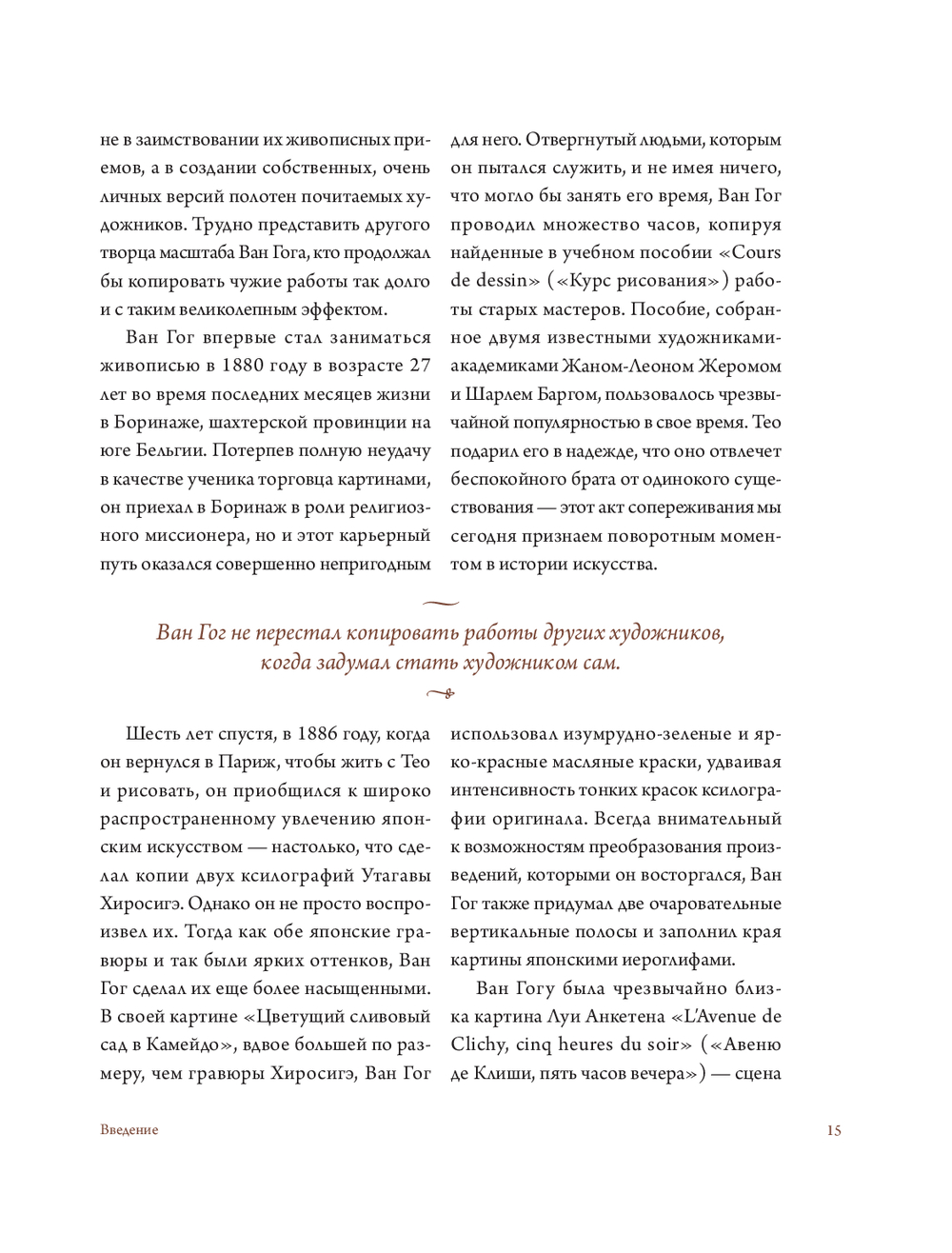 В этой книге Ван Гог предстает перед читателем не только гениальным творцом, но и человеком, находящимся в постоянном творческом поиске: изумленным, сочувствующим, любопытным. Следуя сюжетам Клода Моне, вдохновляясь работами Кацусика Хокусая, соперничая с Полем Гогеном, Ван Гог создает новое искусство и оставляет большой след в истории.