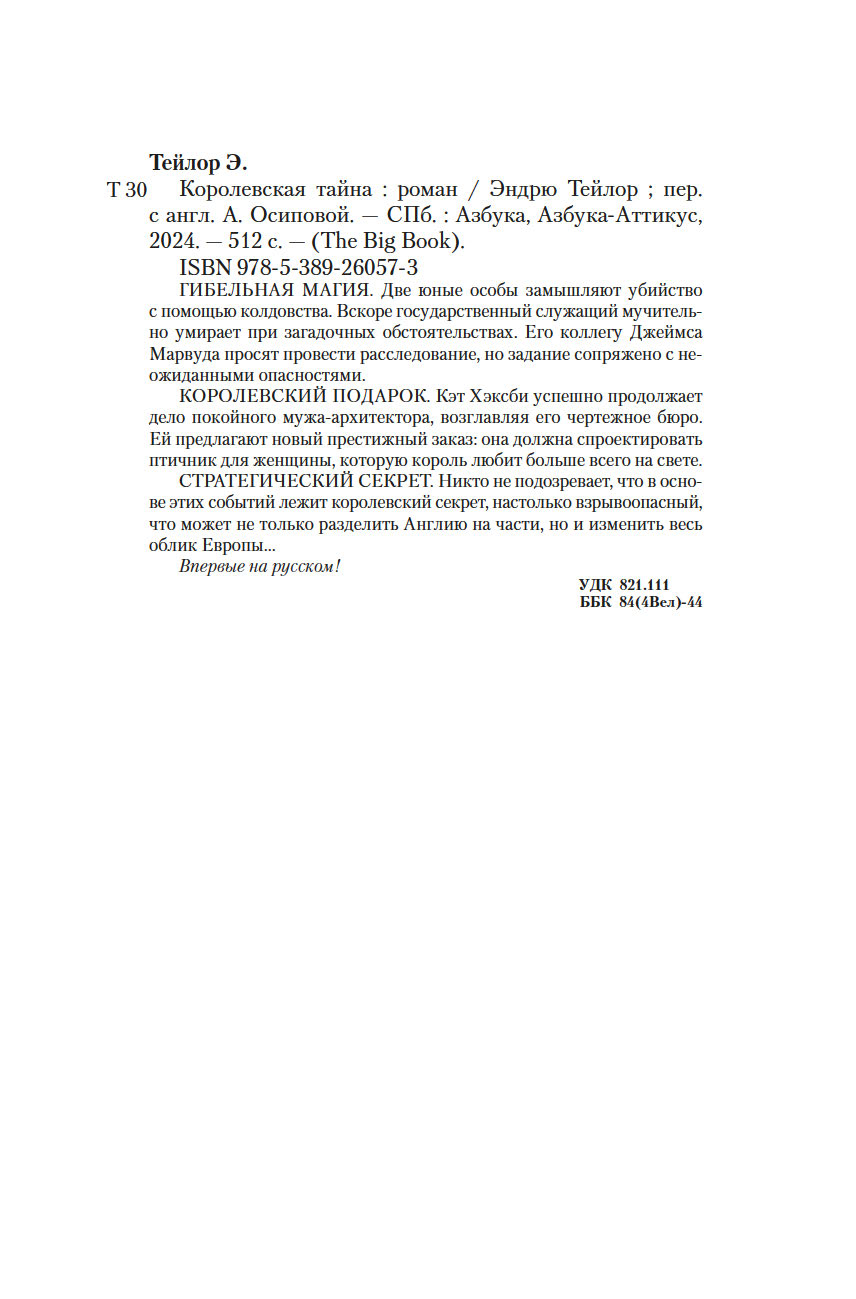 КОРОЛЕВСКИЙ ПОДАРОК. Кэт Хэксби успешно продолжает дело покойного мужа-архитектора, возглавляя его чертежное бюро. Ей предлагают новый престижный заказ: она должна спроектировать птичник для женщины, которую король любит больше всего на свете.