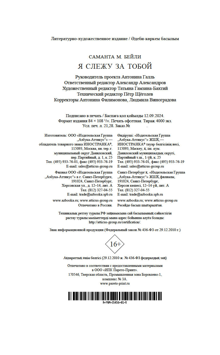 | Изготовитель | ООО "Издательство "Иностранка". 109017, РФ, г. Москва, ул. Пятницкая, 41 |